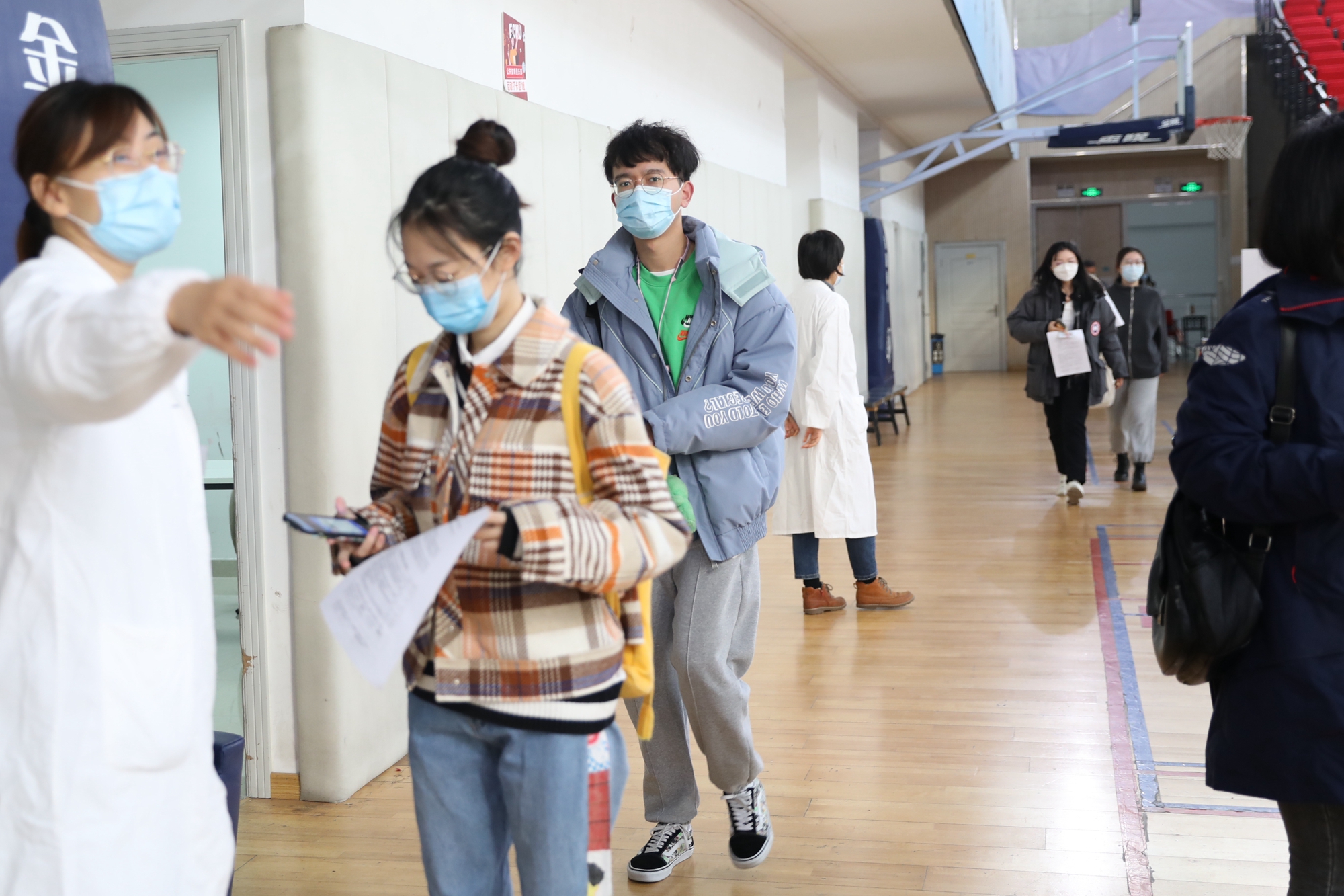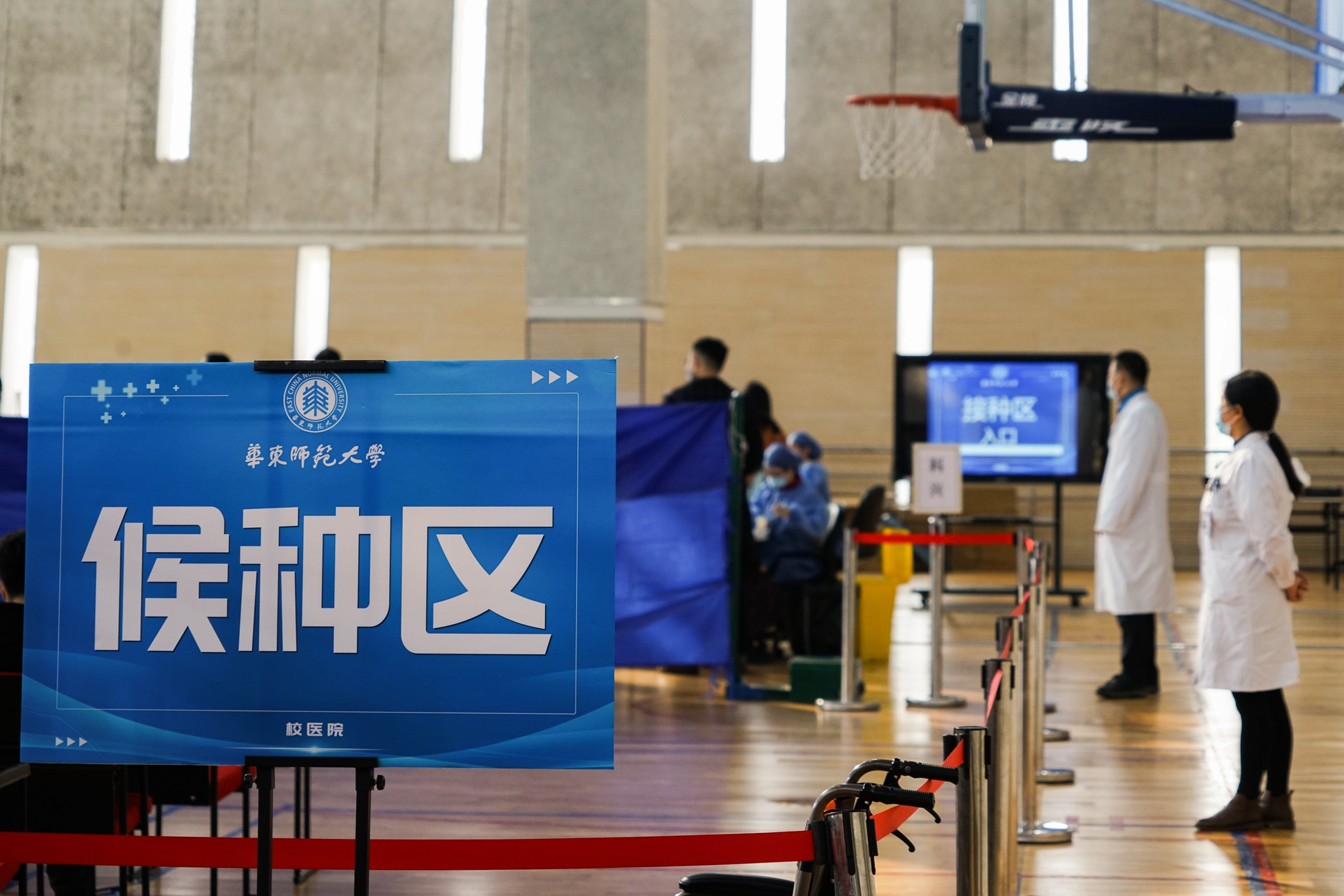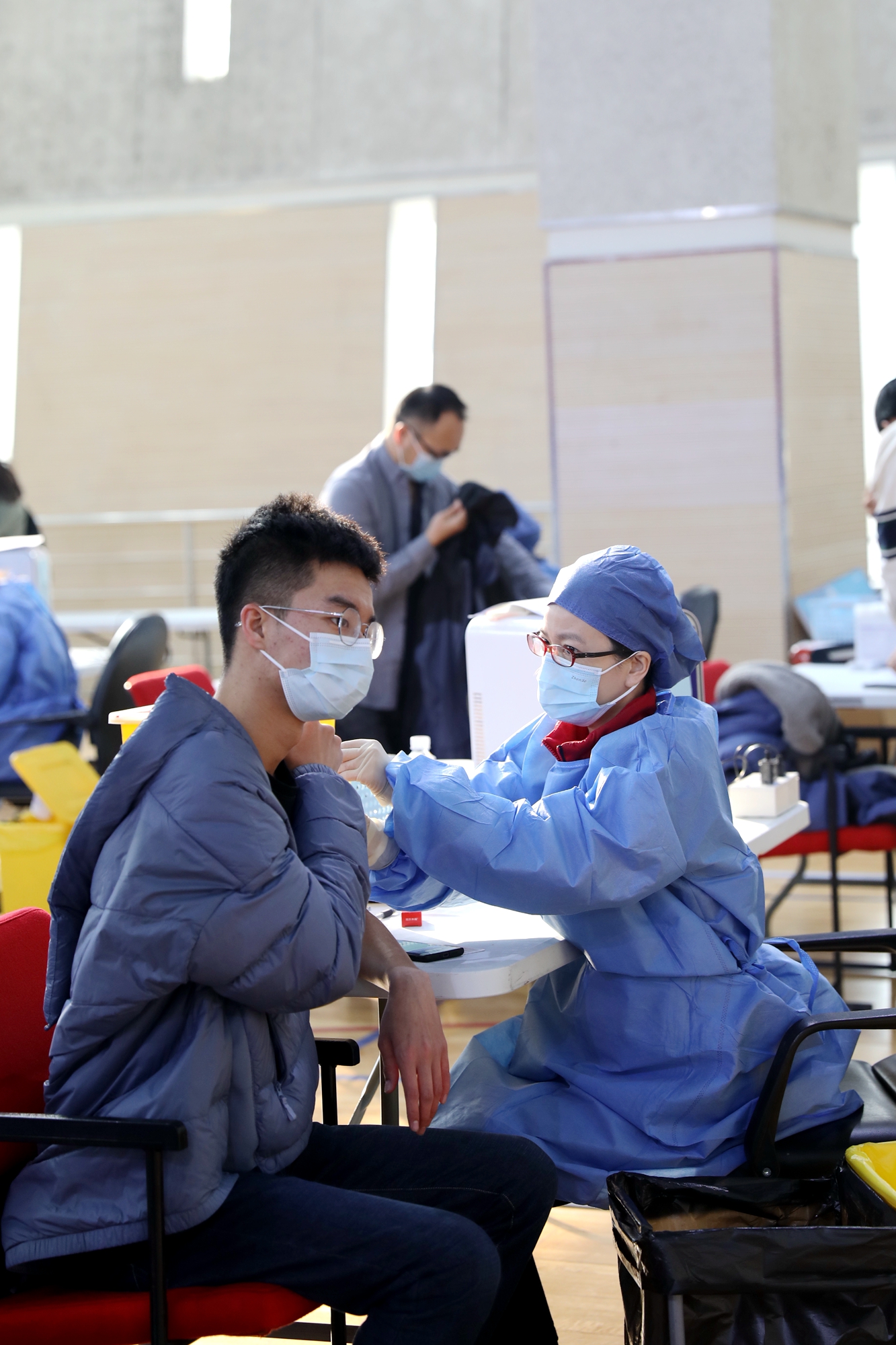 11月30日,虽然大风降温,华东师大闵行校区体育馆人来人往,大家一起为全民免疫屏障助“一臂之力”。为进一步巩固新冠病毒,人群免疫屏障,华东师大按照“知情同意,应种尽种”原则,11月30日和12月1日在闵行校区集中组织开展新冠病毒疫苗加强免疫接种。