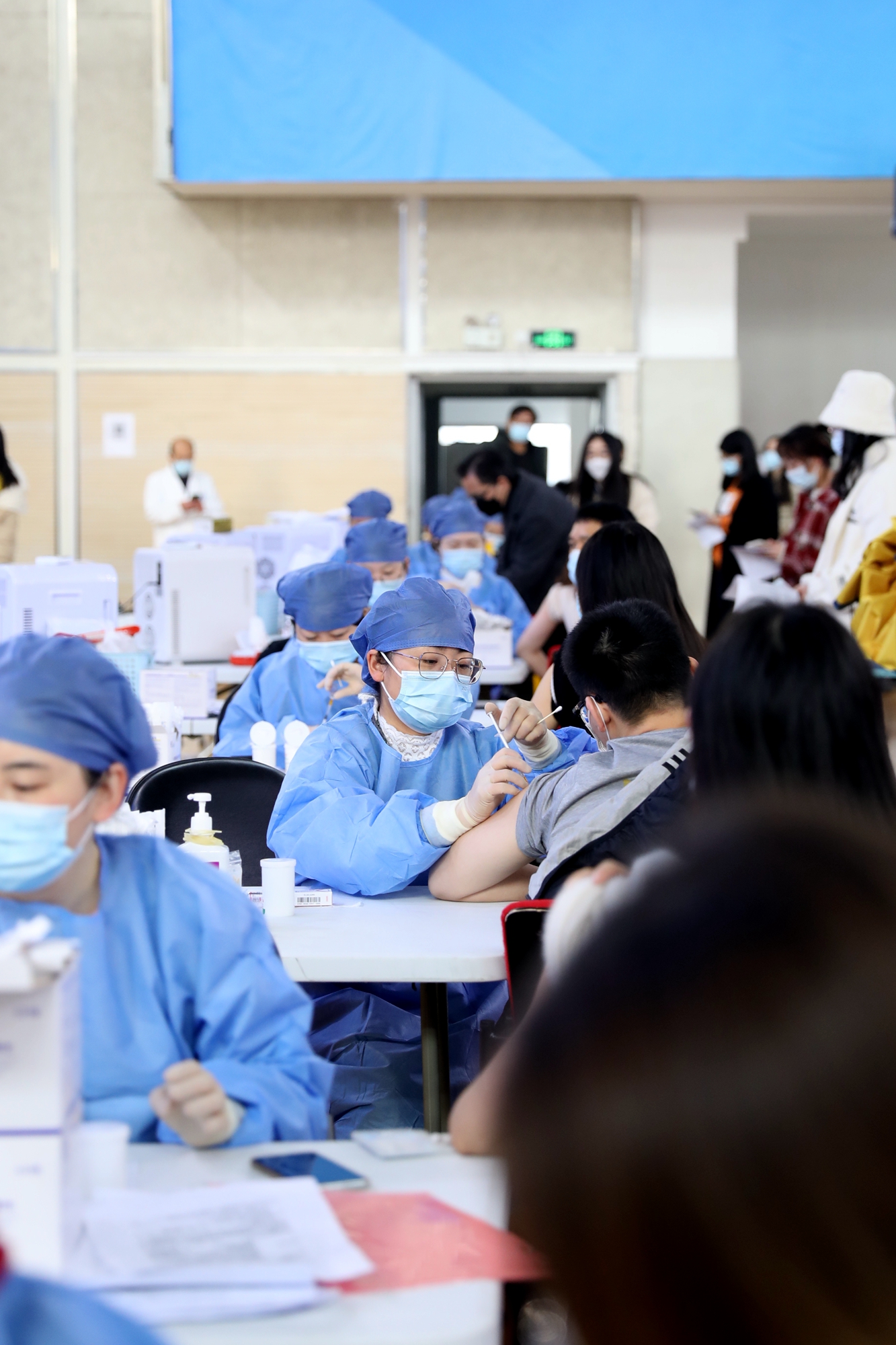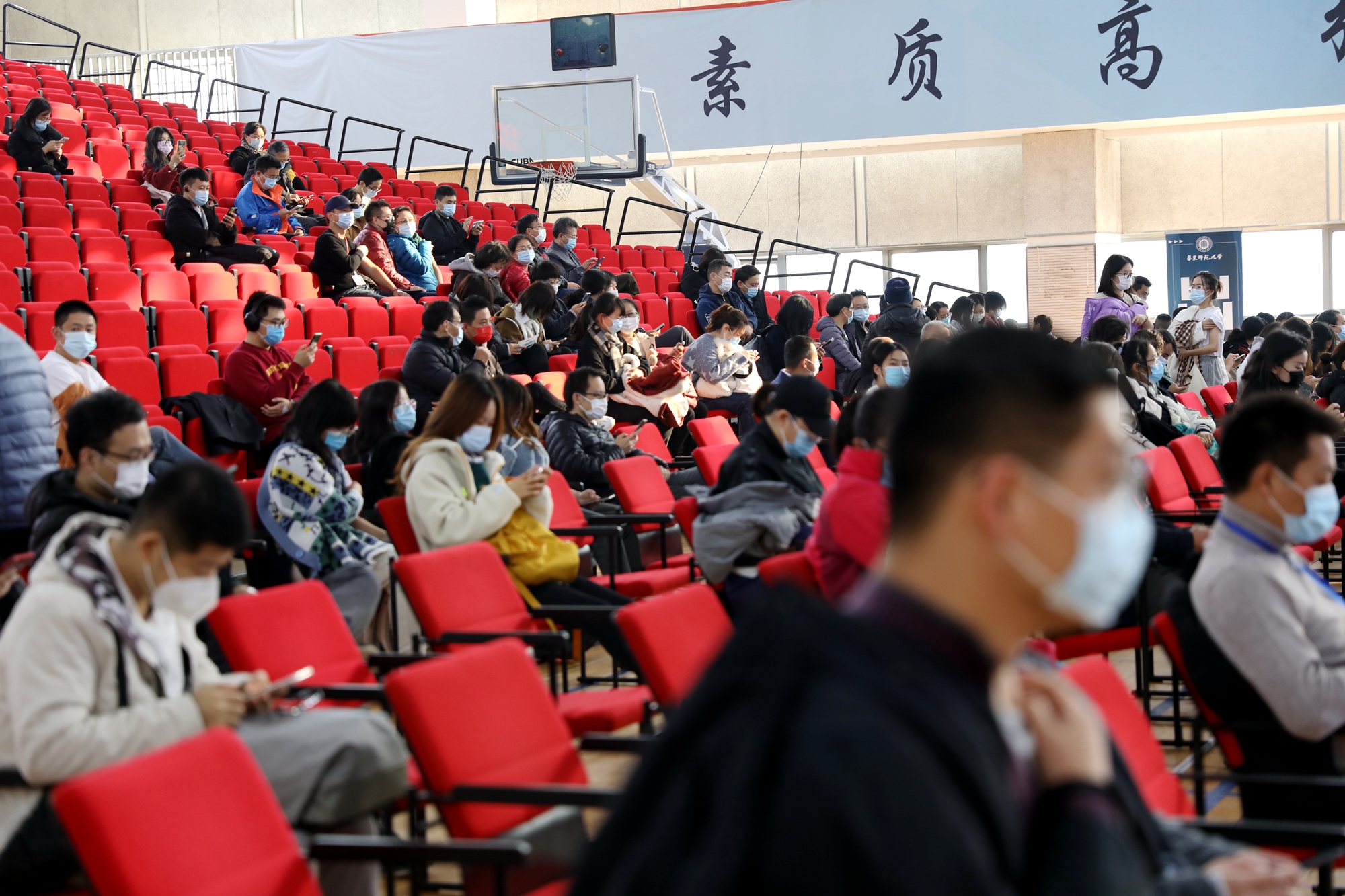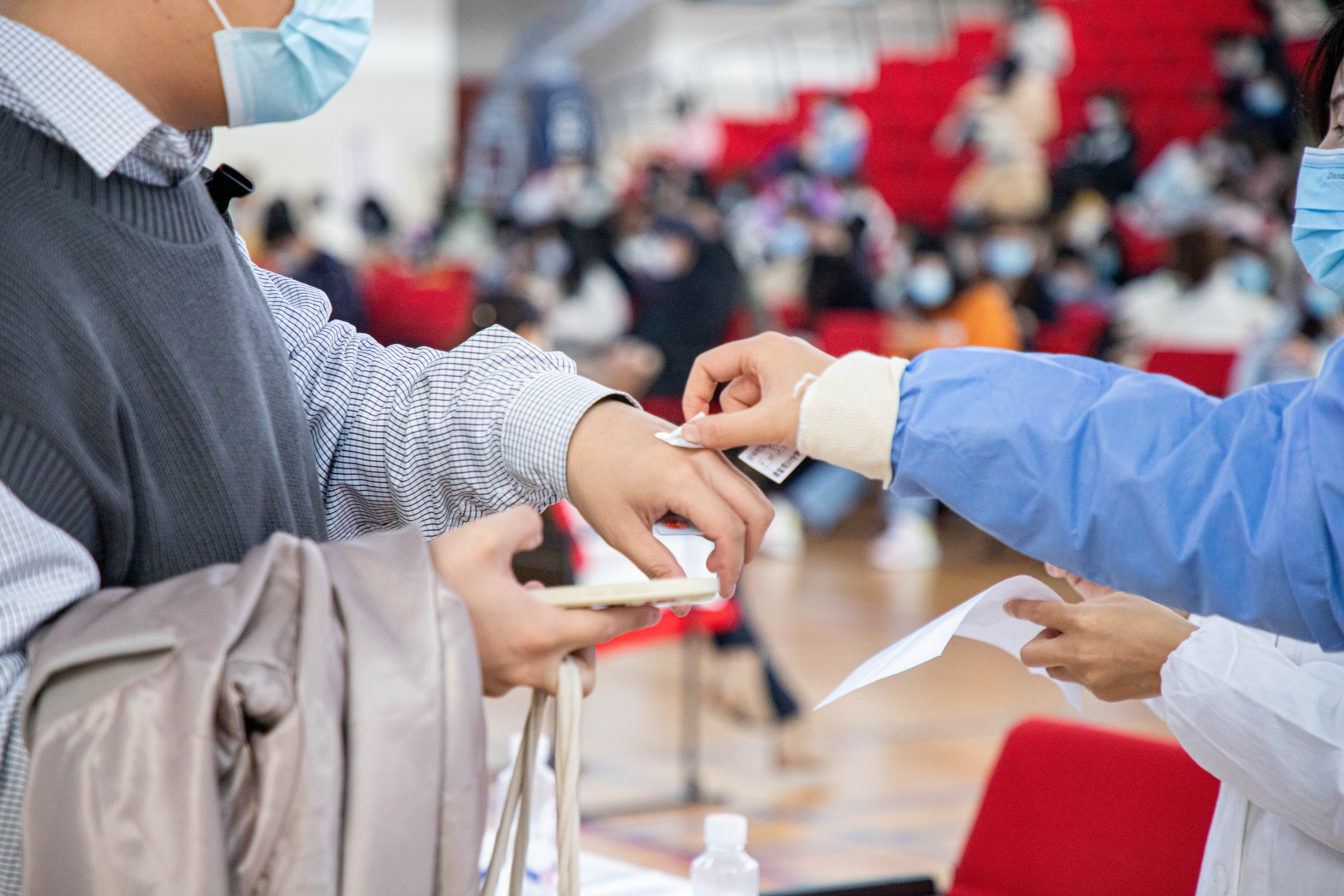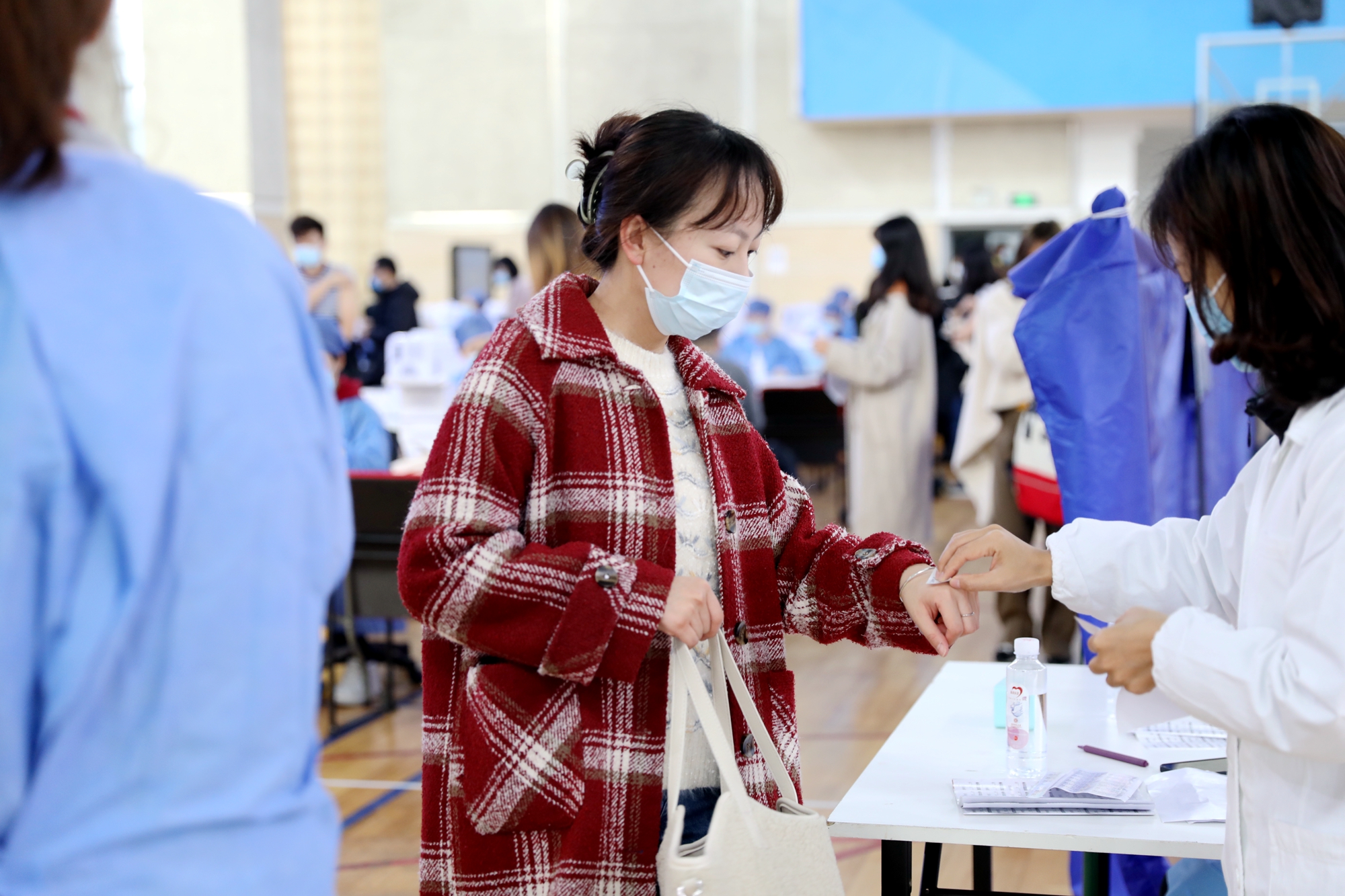 11月30日,虽然大风降温,华东师大闵行校区体育馆人来人往,大家一起为全民免疫屏障助“一臂之力”。为进一步巩固新冠病毒,人群免疫屏障,华东师大按照“知情同意,应种尽种”原则,11月30日和12月1日在闵行校区集中组织开展新冠病毒疫苗加强免疫接种。