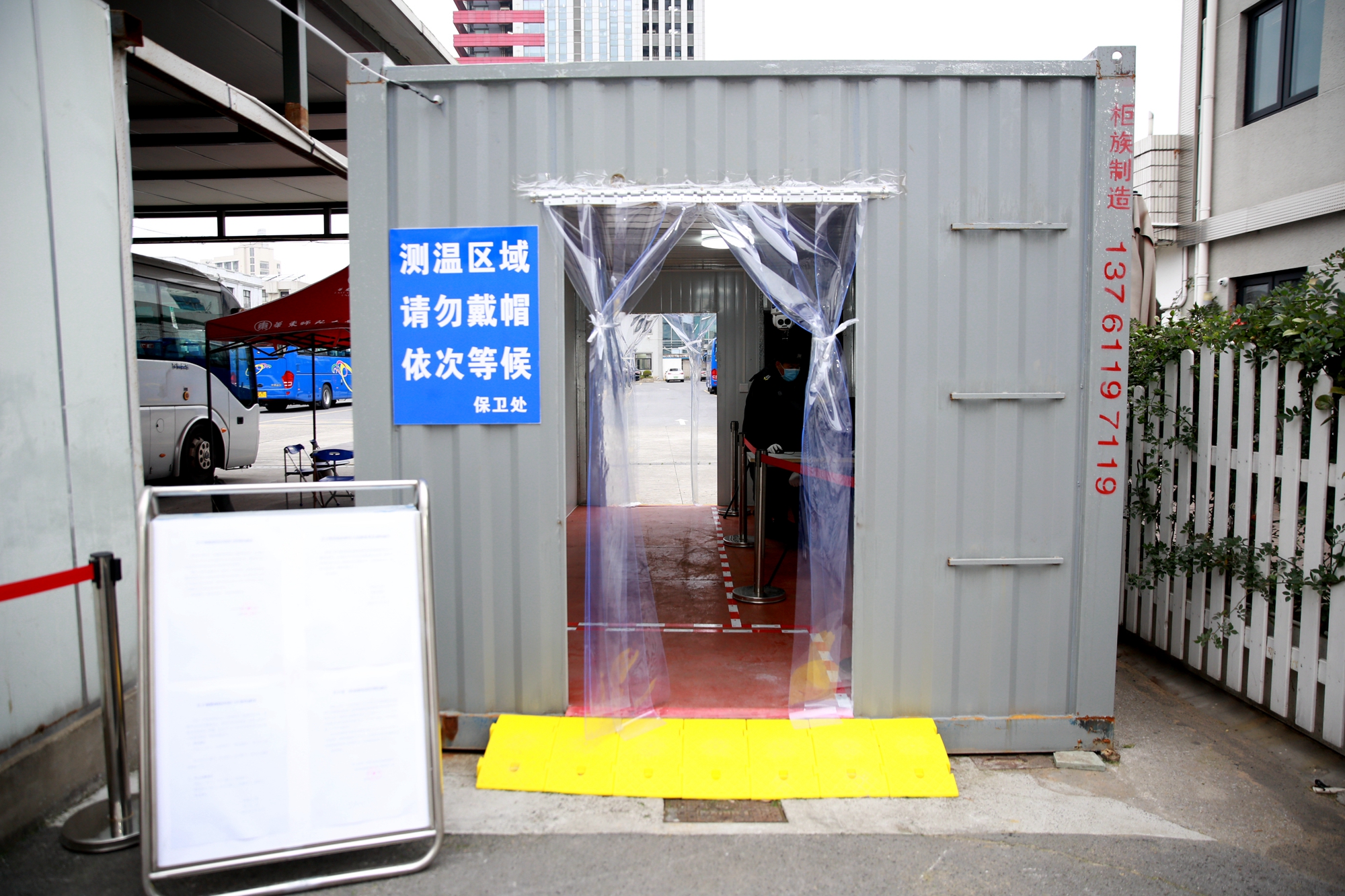 在第八宿舍,廖国勋仔细查看测温、消毒、登记等工作记录,询问留校中外学生、返沪未满14天隔离师生的校园管理和后勤保障情况。在校医院,廖国勋查看医院管理、了解观测情况、慰问医务人员,询问医疗物资配备等情况。