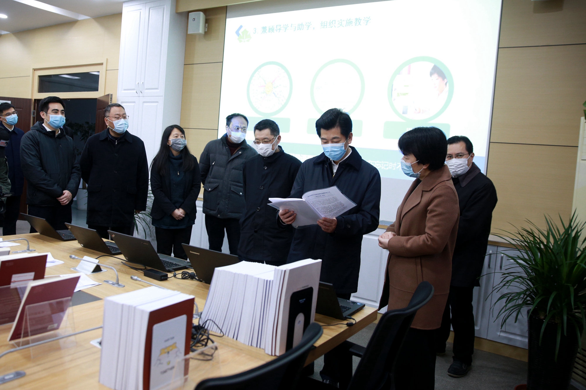 梅兵详细汇报了学校疫情防控工作以及开学准备情况,并从资政研究、科研攻关、服务社会等方面介绍了学校师生服务国家和上海市疫情防控的相关举措。学校积极报送疫情相关研究专报,资政建言;开通心理热线、借助网络平台等向全社会提供心理防疫与健身指导援助;制作在线教学攻略集,开设防疫助学频道,支持全国基础教育在线复课;在试剂盒研制,加速新冠病毒检测等等方面都做了大量工作。