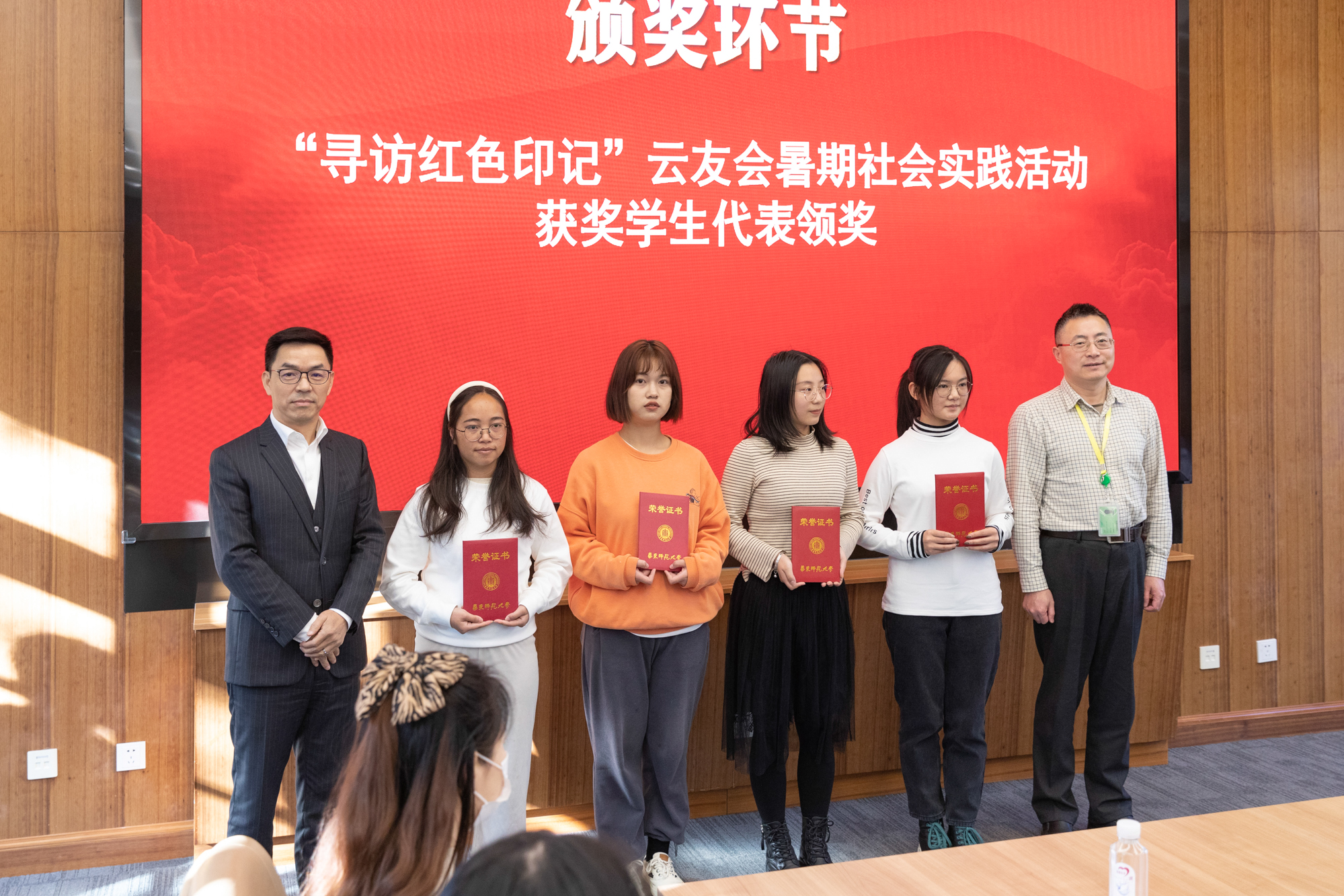 王云、余佳为2021年云友会暑期社会实践活动获奖学生代表颁发荣誉证书