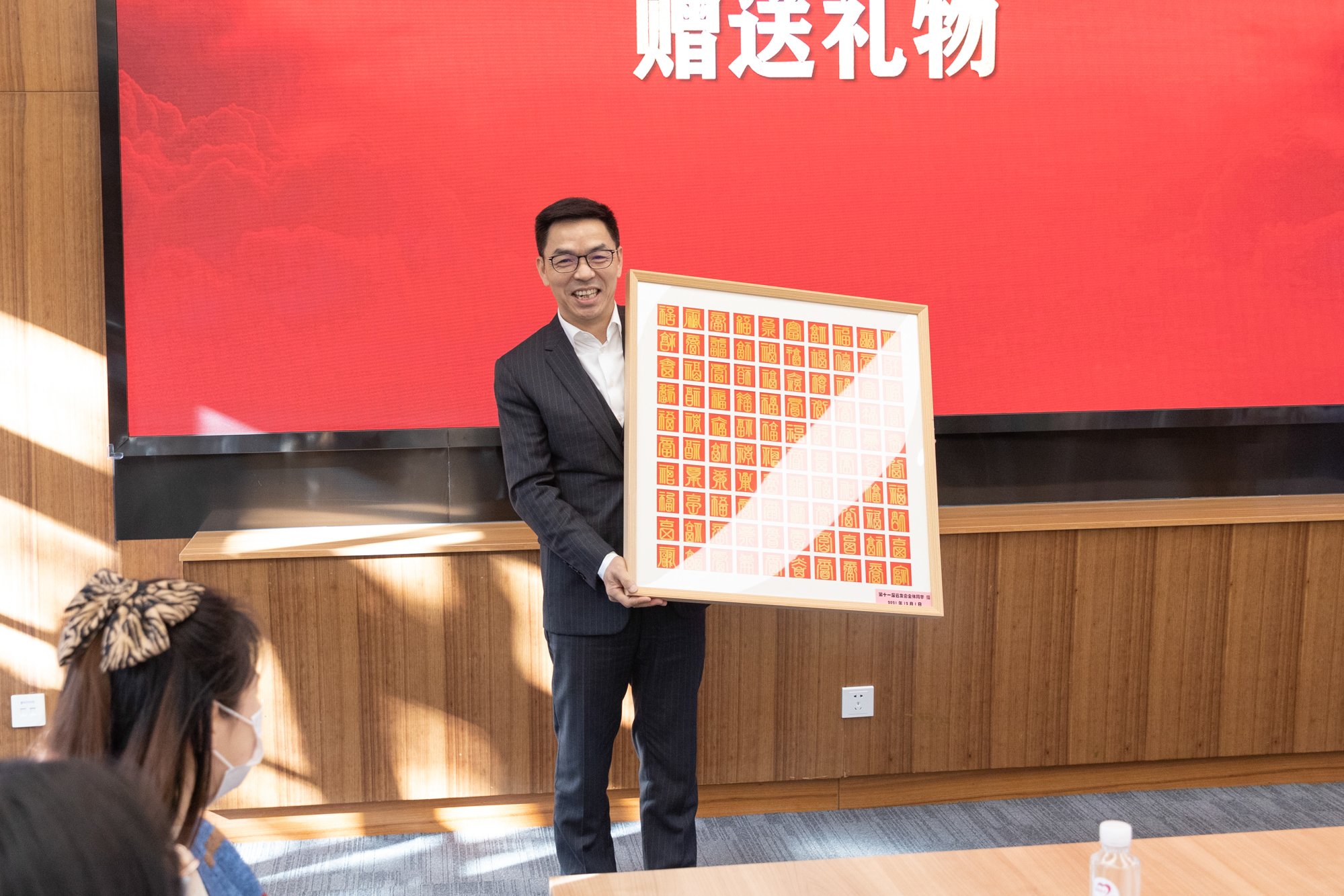 颁奖典礼现场,王云、宛姝两位嘉宾为新一届的云友会会长及部长颁发聘书。云友会获奖受助学生代表向王云赠送了手绘《百福图》,以表达同学们的衷心感谢和美好祝福。