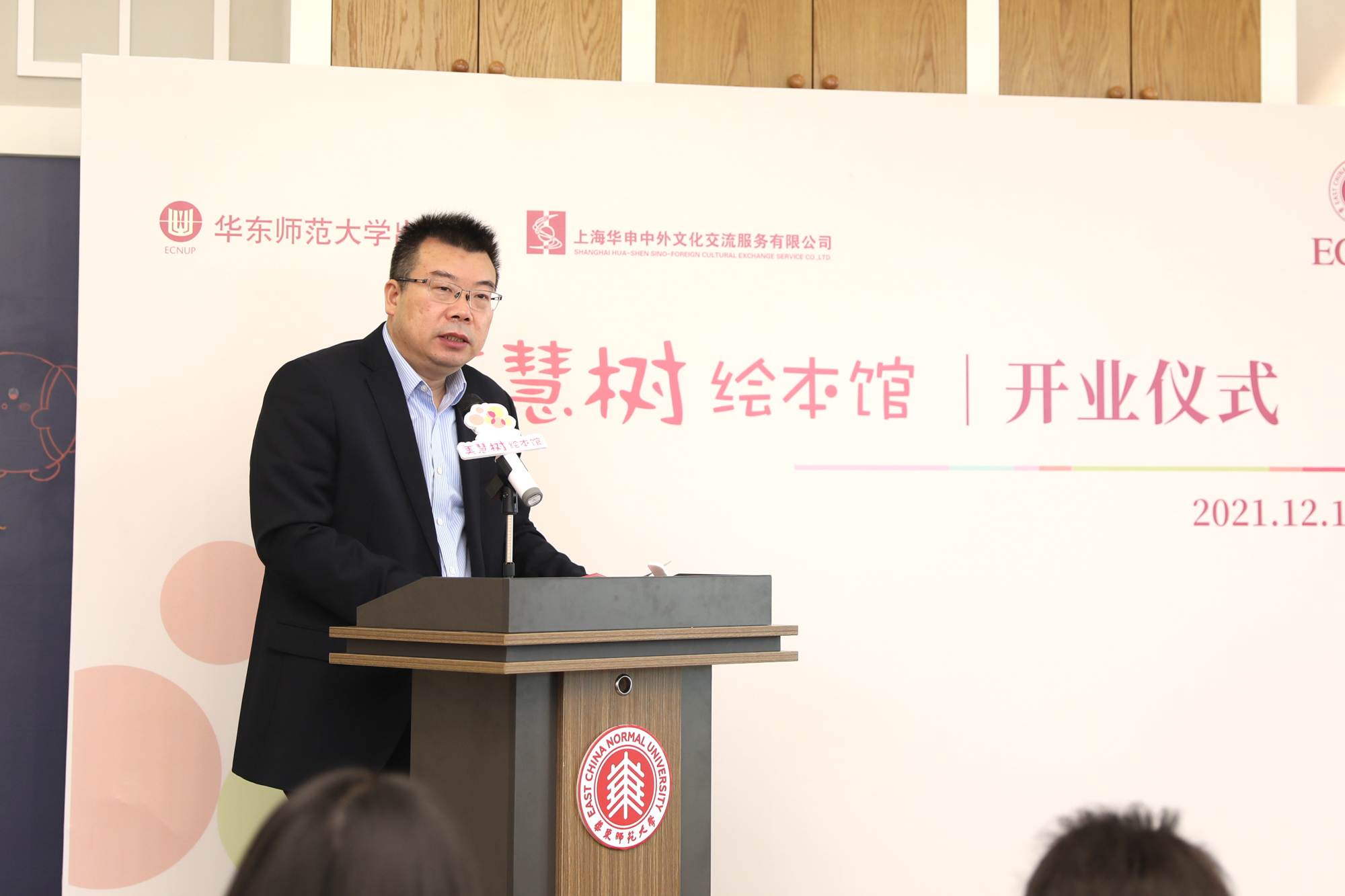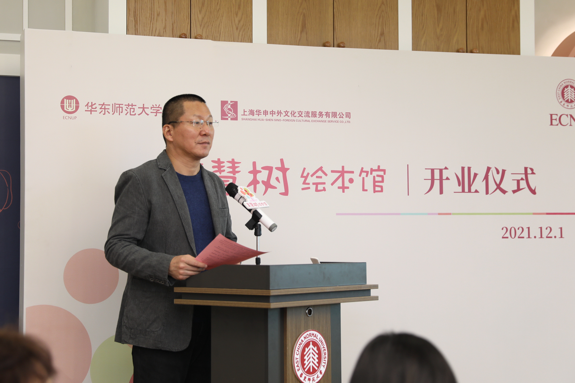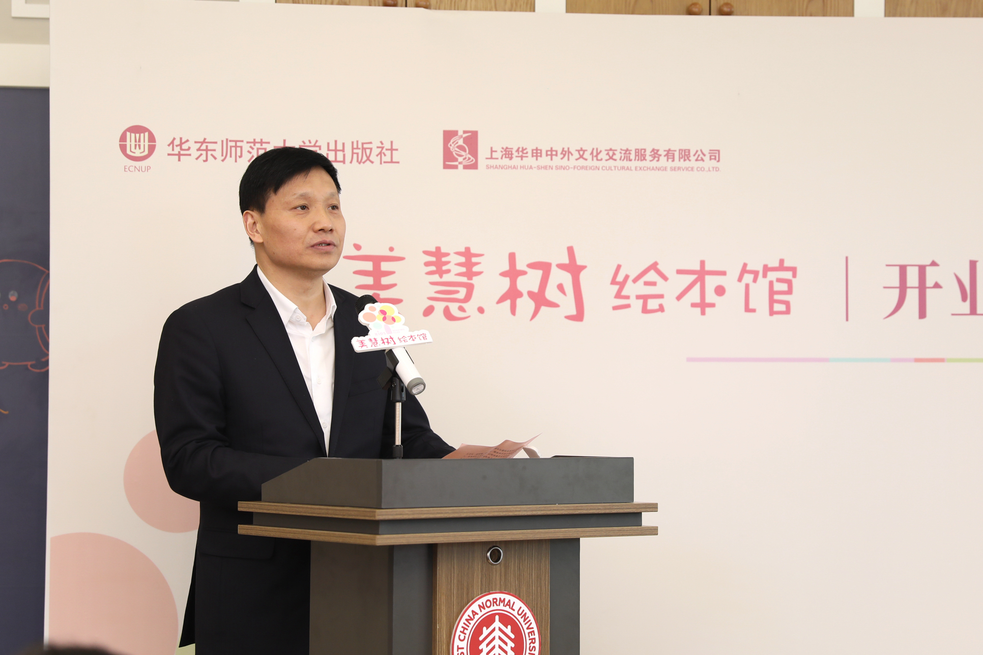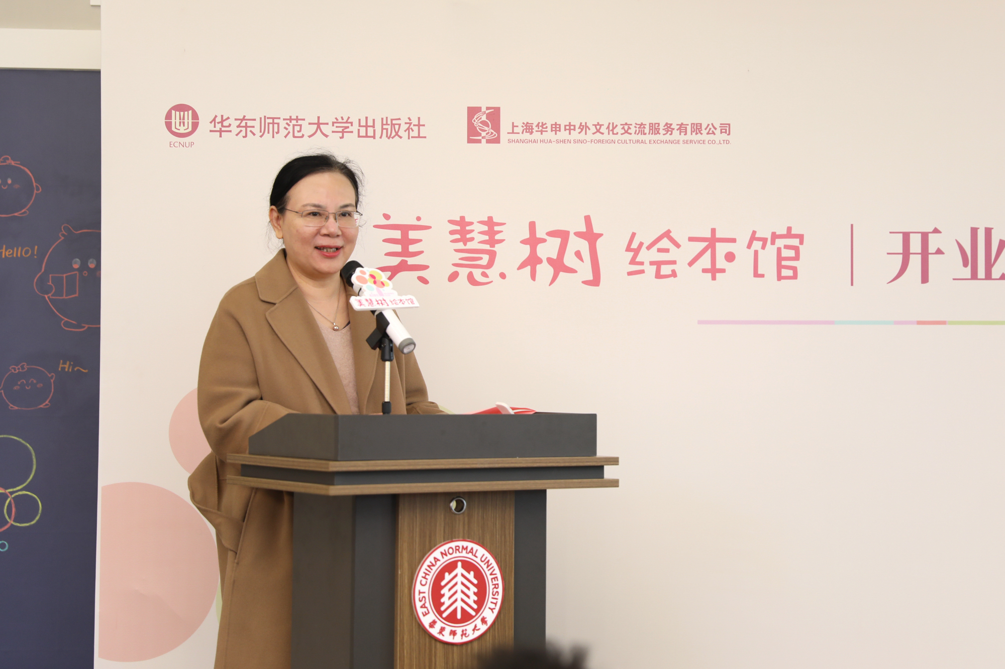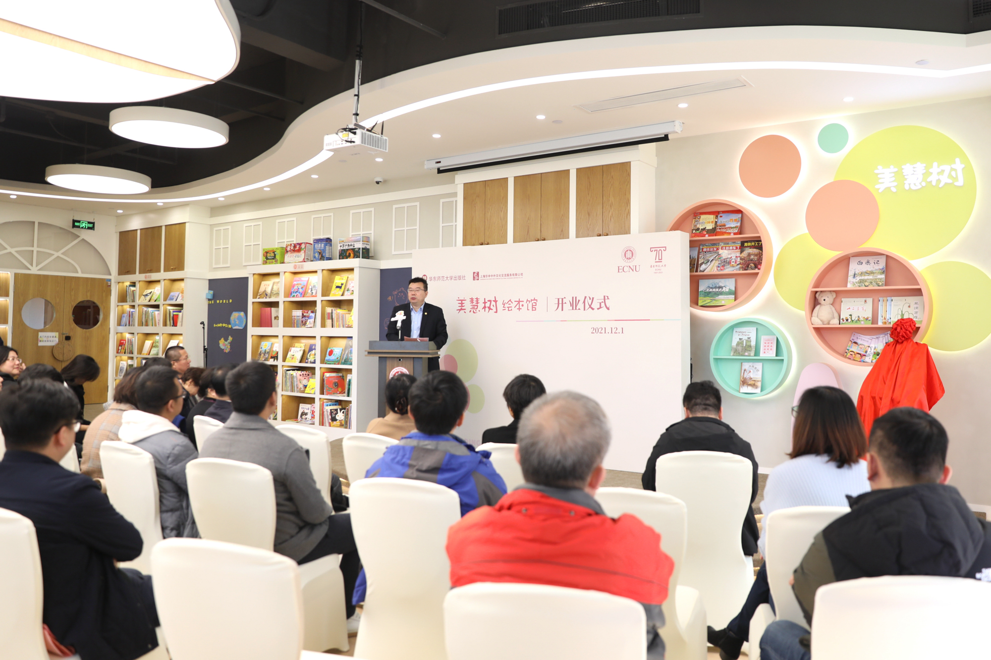 华东师大资产经营有限公司总经理、党委副书记李群主持“美慧树绘本馆”开业仪式