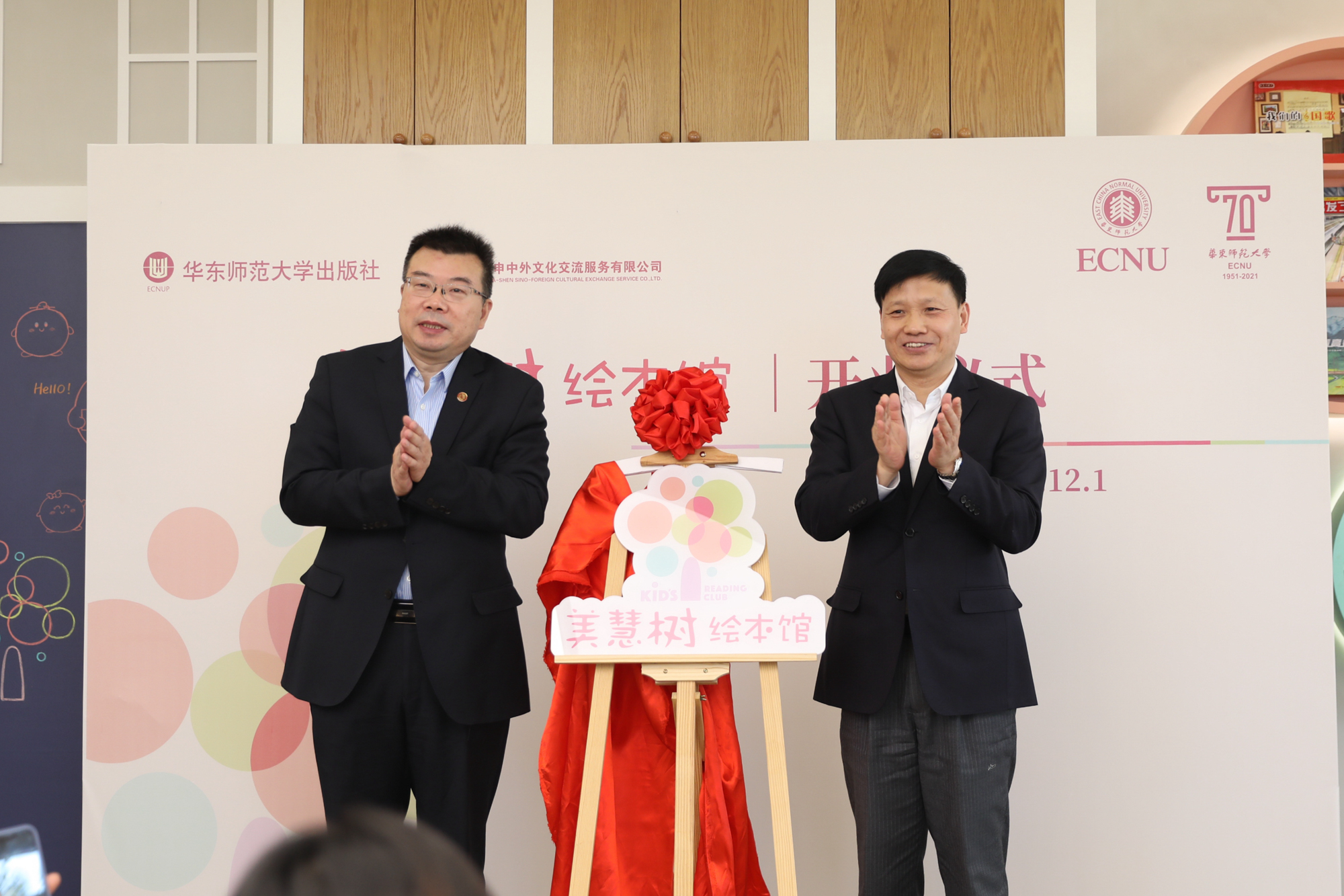 华东师大副校长孙真荣与吴泾镇党委书记金海民共同为“美慧树绘本馆”揭牌