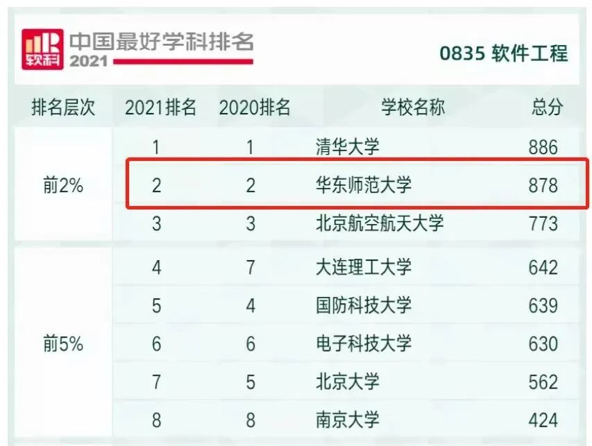 华东师大软件工程学科建设发展迅猛,在10月25日高等教育评价专业机构软科正式发布的“2021软科中国最好学科排名”中,保持全国第二的优势。