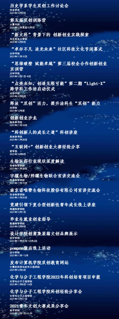 创新创业教育周活动清单