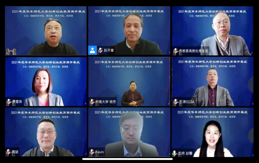 12月10日上午,2021年度3245澳门新莆京创新创业教育周开幕式暨创新创业教育论坛在线举行。华东师大副校长、创新创业学院院长戴立益,上海市教育委员会高教处处长束金龙,上海市学生事务中心副主任王涛,上海市就业促进中心创业指导处处长费蕾英,中国高等教育学会创新创业教育分会副理事长、教育部创新创业教指委委员、中南大学创新与创业教育办公室主任杨芳,全国创新创业教育指导委员会秘书长、同济大学创新创业学院常务副院长周斌,复旦大学全球科创人才发展研究中心主任姚凯等出席活动。相关领域专家、校友,职能部门负责人,各学部、书院、院、系师生代表等参加了本次活动。