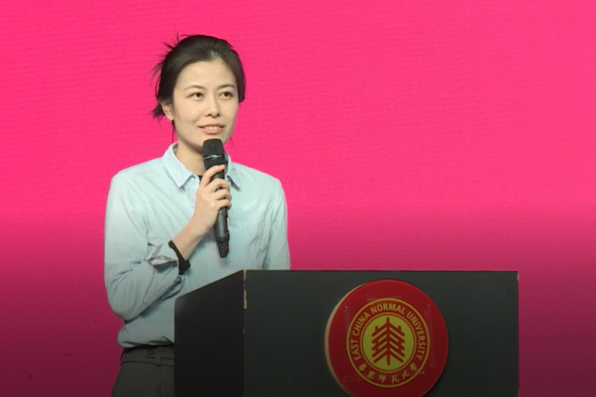 活动还邀请了上一届宣讲团活动的优秀团队代表作经验分享。来自音乐学院的程雨阳同学结合过往的宣讲经验,从学校介绍、招生政策、宣讲心得等方面进行了分享,将“爱在华东师大”的温暖精神延续给宣讲团的成员们。