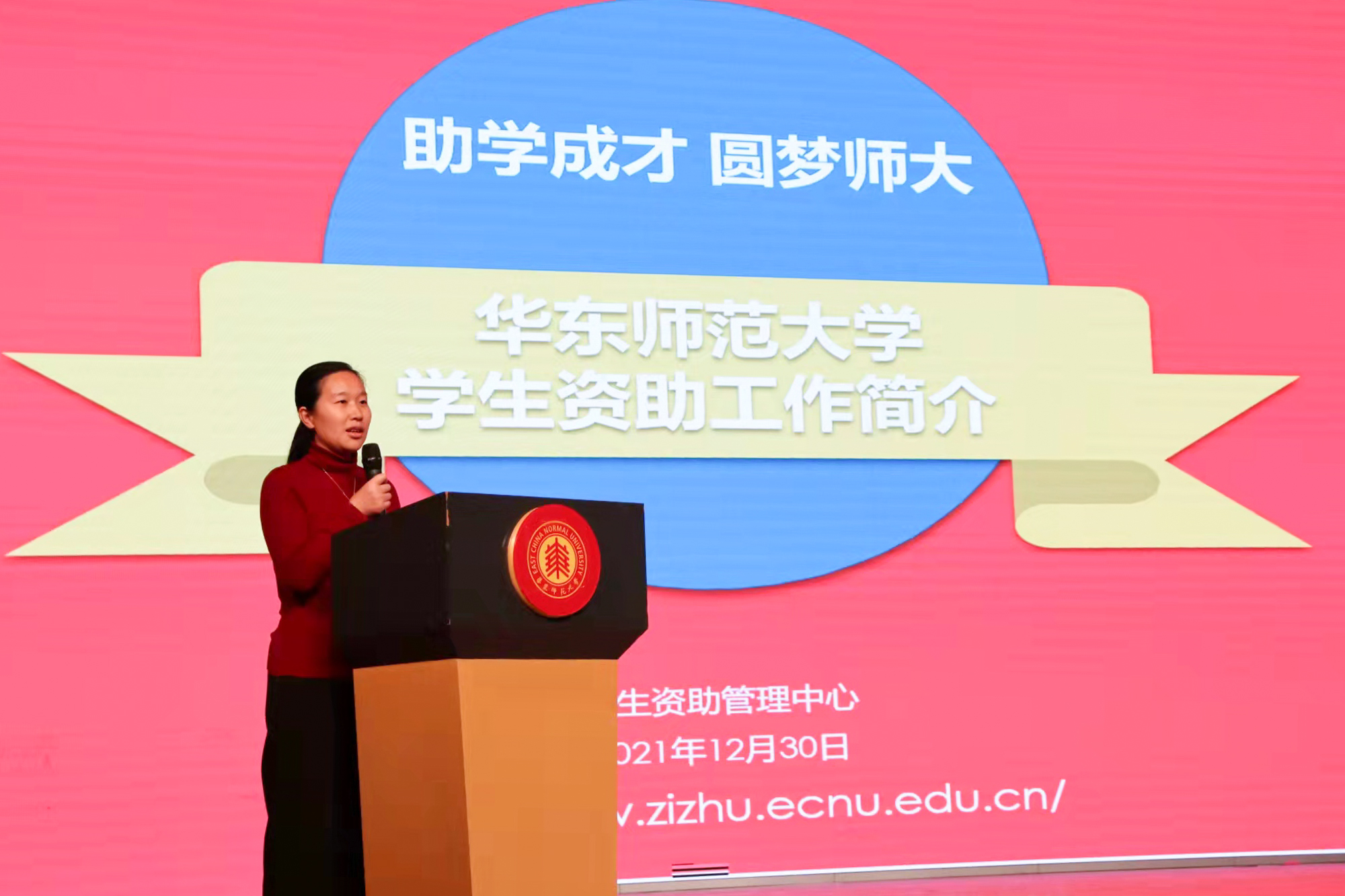 学生处副处长王新燕作学校资助政策介绍。她表示,华东师大一直秉持“资助育人”的理念,建立了助学贷款、助学金、奖学金、勤助与困补四位一体完善的资助体系,同时向新生提供绿色通道,希望能够通过这种方式“助力人才,圆梦师大”。希望同学们进一步了解学校的资助工作,也将学校的资助信息带给更多的中学同学们,鼓励大家勇敢报考。