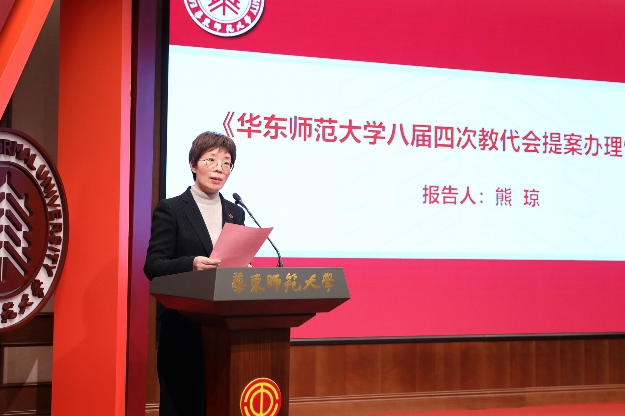 教代会提案工作小组组长熊琼作《3245澳门新莆京第八届教代会第四次会议提案办理情况报告》