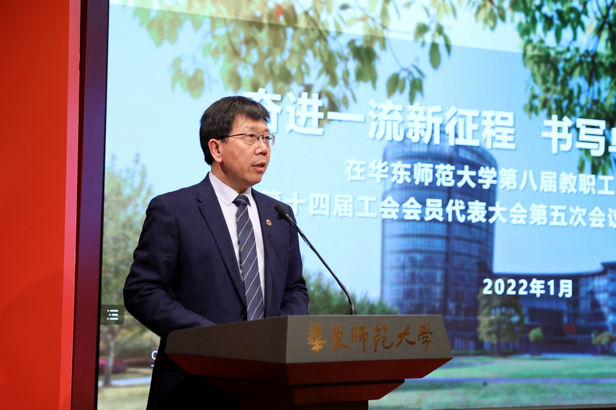 钱旭红在报告中指出,2021年全校师生以习近平新时代中国特色社会主义思想为指导,学习贯彻落实党的十九大和十九届二中、三中、四中、五中、六中全会精神,学习贯彻落实习近平总书记关于教育的重要论述,围绕“育人”“文明”“发展”三大核心使命,瞄准世界一流大学建设目标,以70周年校庆为契机,全面总结办学经验,科学谋划未来发展,“十四五”规划和新一轮“双一流”建设顺利开局起步,办学声誉持续提升,综合实力稳步增强,以优异成绩献礼建党100周年和建校70周年。钱旭红指出,过去的一年,学校在改革中前行、在奋斗中前行、在压力下前行、在希望中前行,具体表现在谋划新局,跑出深化改革“加速度”;一体推进,打造卓越育人“生态圈”;战略导向,蓄势卓越学术“新动能”;引育并举,构筑人才荟聚“强磁场”;提质增效,扩大共赢发展“朋友圈”;传承文脉,激扬温暖奋进“正能量”;用心用情,做好服务师生“贴心人”。他还报告了2021 年学校财经工作运行情况。