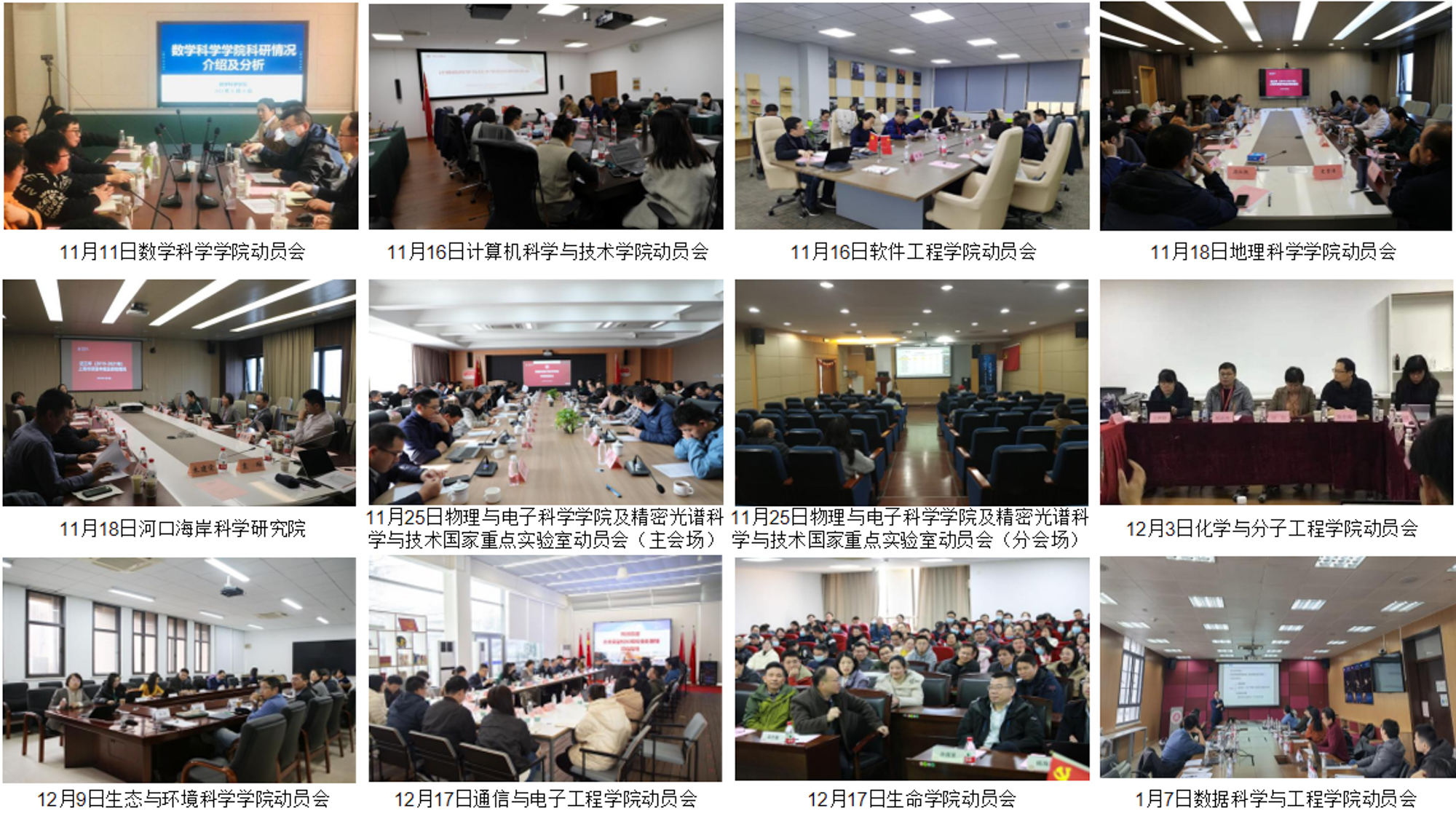 在系列动员会上,各学院相关领导介绍了本学院的发展历程及师资、基地概况,并对学院近年的科研情况项目、经费情况进行了分析。同时,针对学院目前存在的问题,提出了提升策略和具体实施举措。