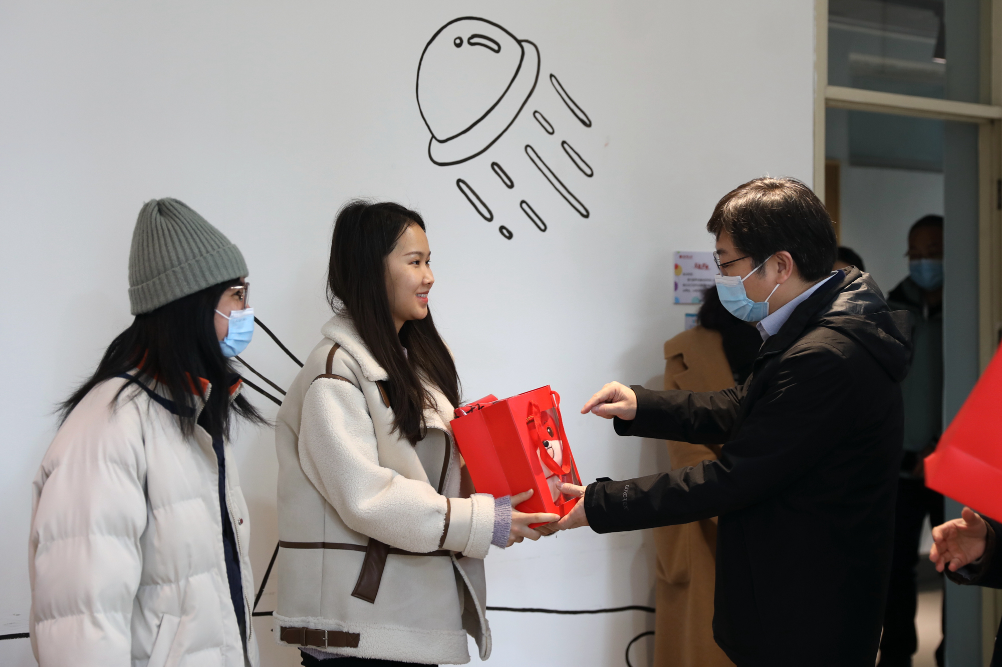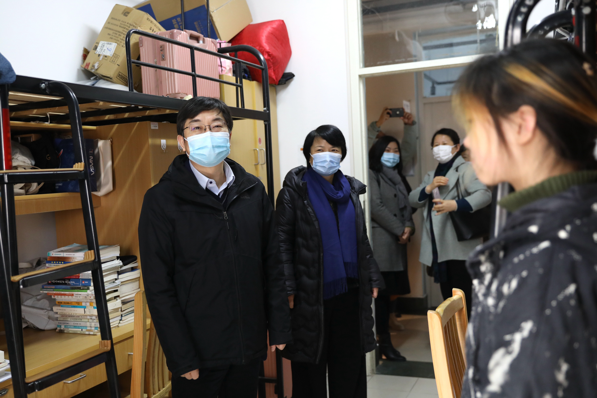 随后,杨振峰一行还实地查看了保卫处监控室、校医院、本科生公寓、隔离留观宿舍等学校重点区域,并通过视频监控巡查了两校区校园等教学生活场所。在检查指导过程中,杨振峰表示疫情防控形势依然严峻,要切实加强校园疫情防控工作,做到疫情防控工作不松懈、不懈怠,抓实抓细重点区域和重点环节,确保校园安全稳定。在学生宿舍,他询问了留校学生情况并为学生发放学校准备的慰问品,叮嘱同学们留校过年要保重身体、好好学习。