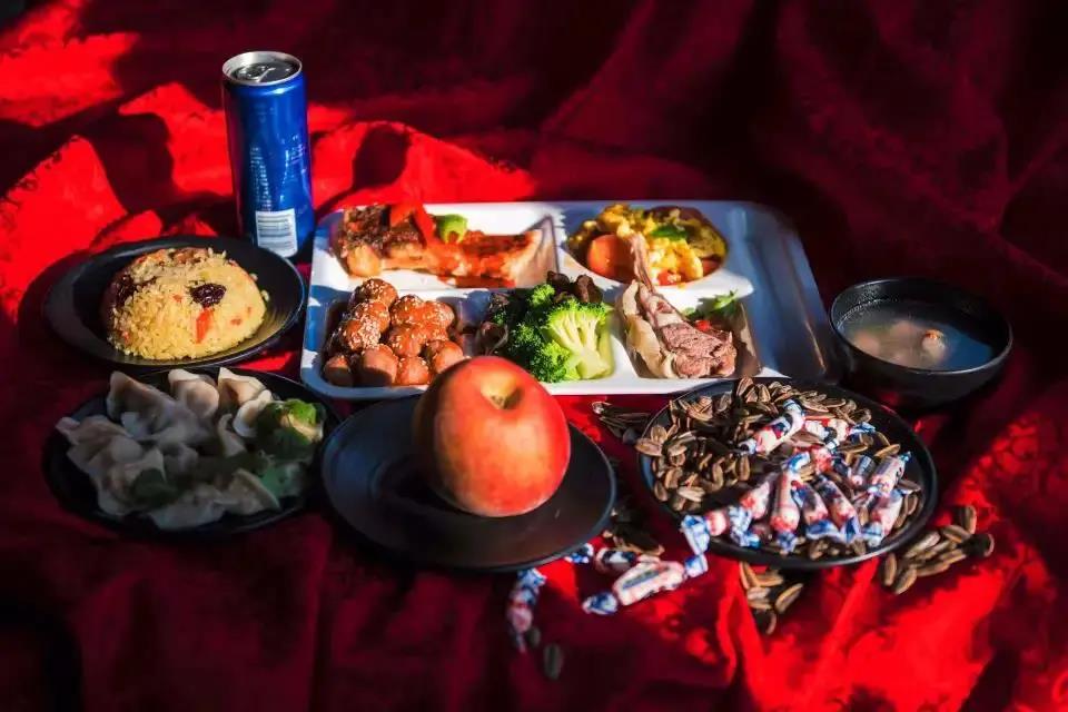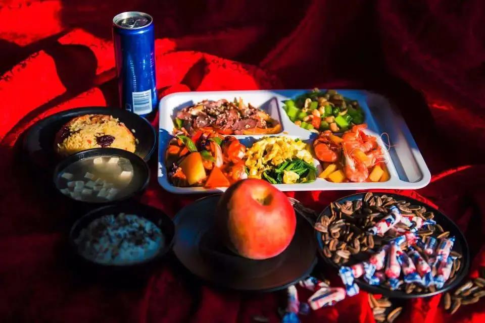 套餐三:孜然羊排、芝麻牛肉丸、红烧青鱼、番茄鸡蛋、木耳西兰花;羊肉汤;新疆抓饭或牛肉水饺、米饭;饮料;水果;糖果。