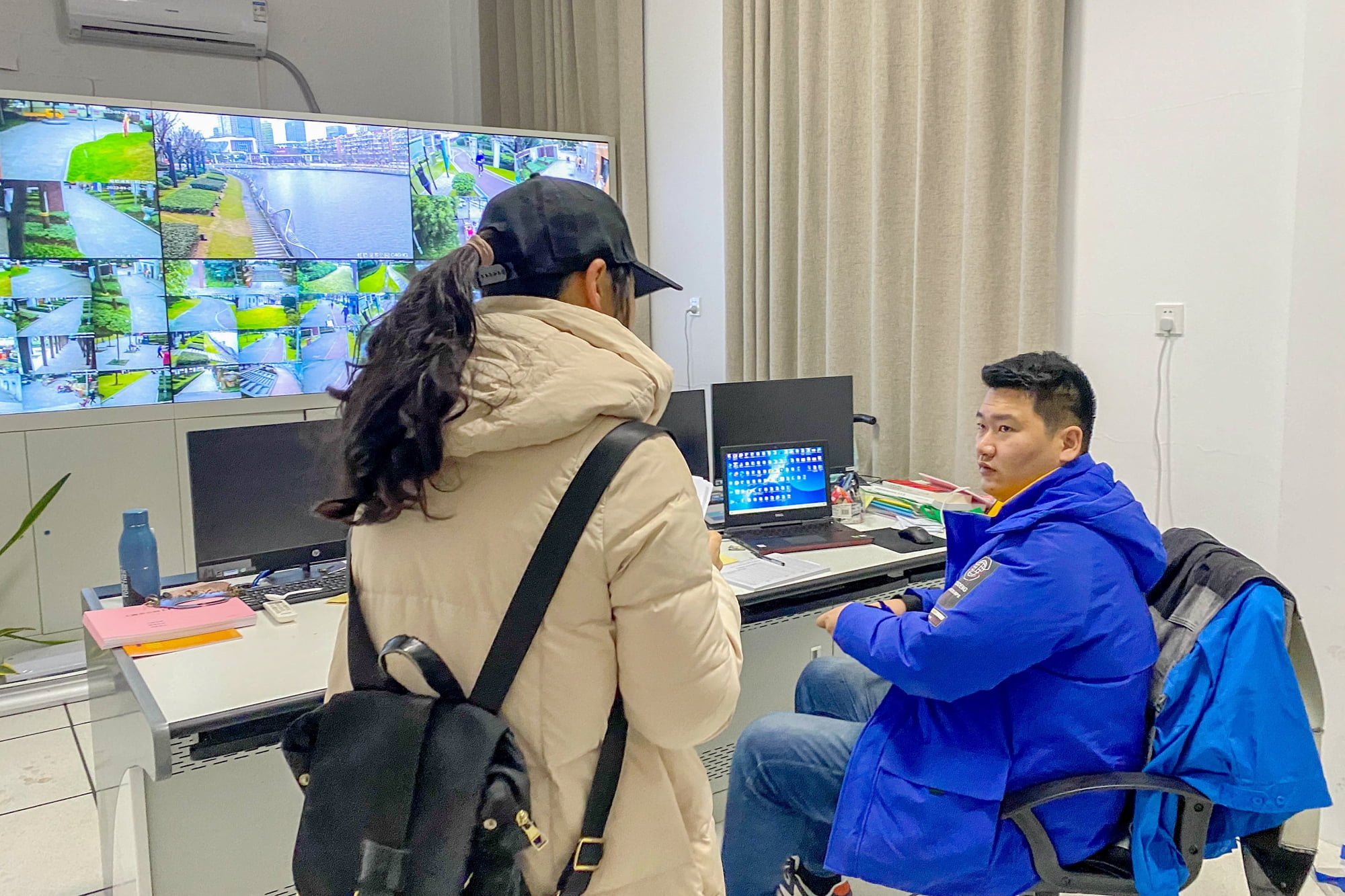 人民城市人民建,人民城市为人民。为了了解市民对于苏州河沿岸雨水利用现状的真实体会和想法,同学们首先访谈了虹桥河滨公园的物业工作人员,调查公园取水、排水与雨水利用的情况。通过访谈,团队成员对苏州河两岸的节水减排现状有了更加深入的了解。