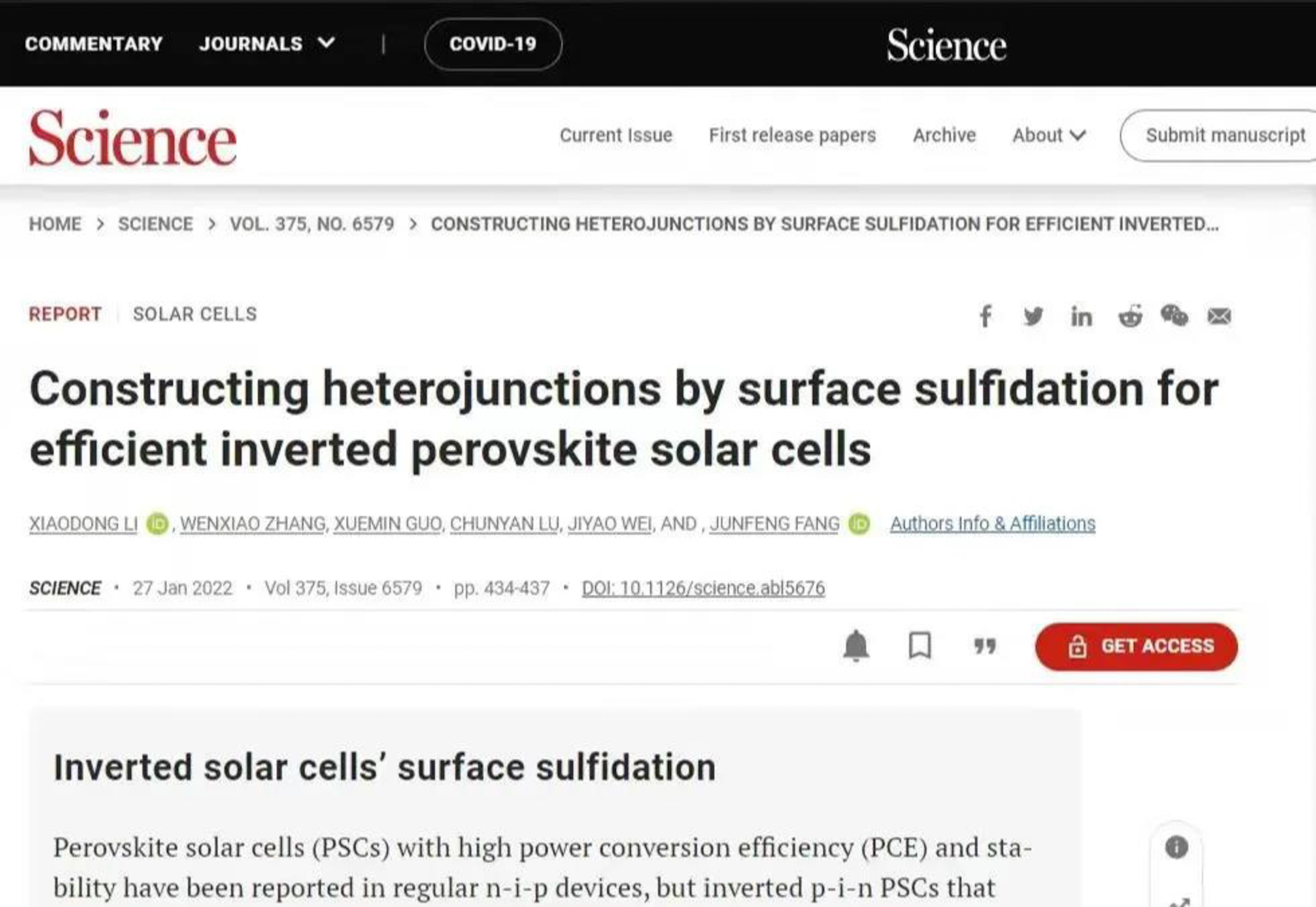 新年伊始华东师大科研获得开门红,反型钙钛矿太阳能电池的最新科研成果登上《科学》杂志。方俊锋团队的研究被审稿人评价为“创造了新的反型钙钛矿电池效率世界纪录,首次实现转化效率>24%的反型钙钛矿电池”“突破了反型器件效率低这一长期以来困扰钙钛矿电池发展的关键瓶颈问题,为钙钛矿电池的研究开辟了新的思路与方向”。