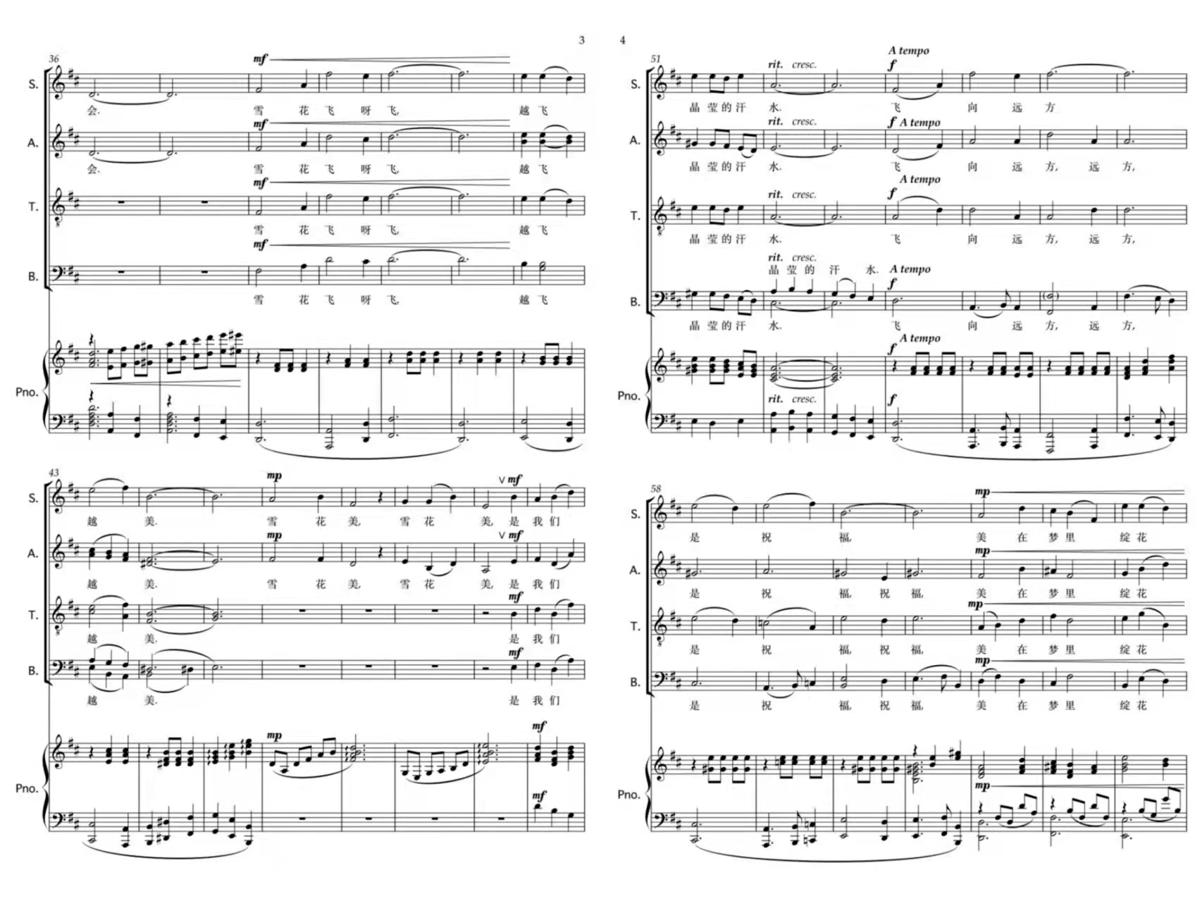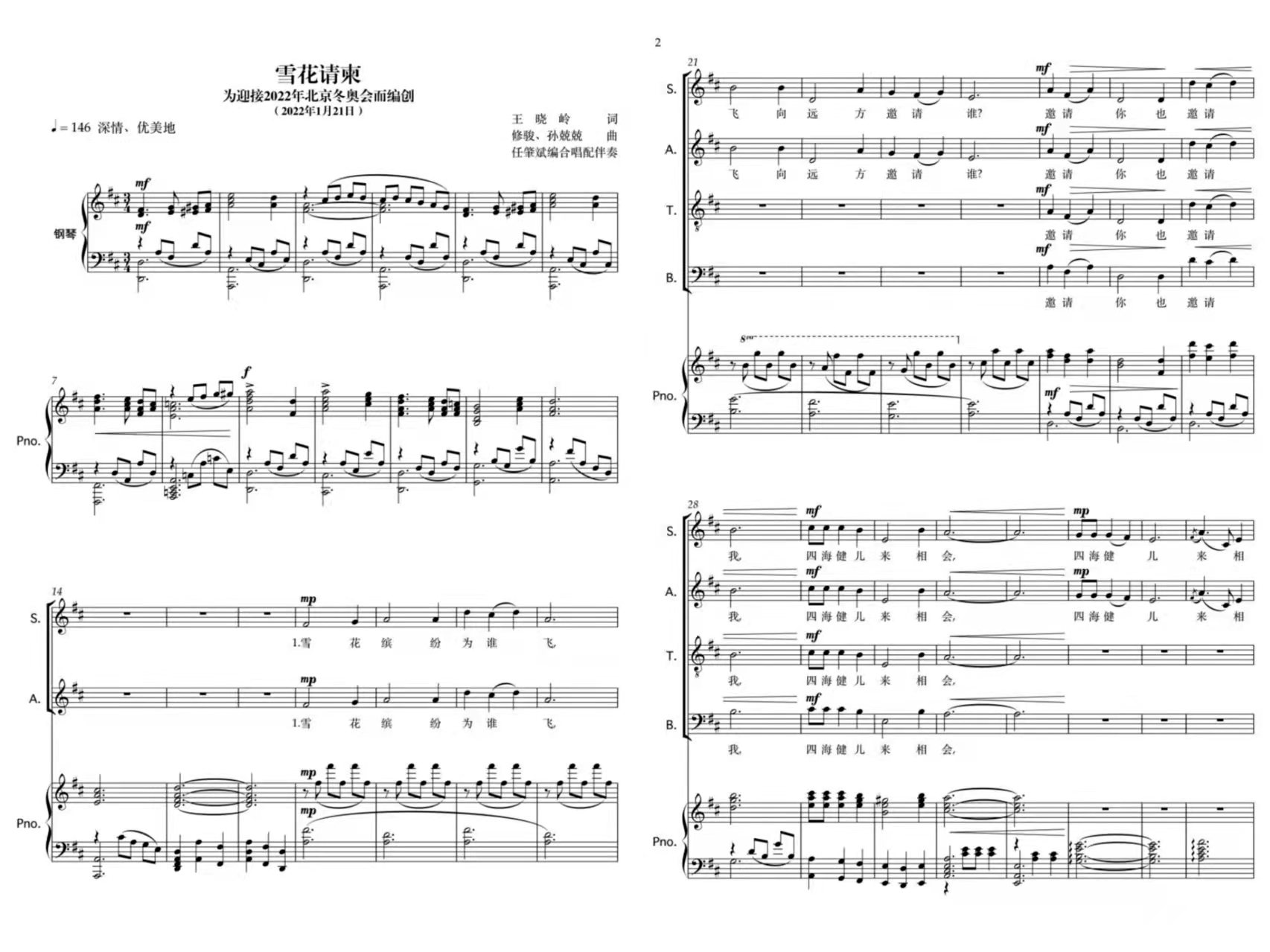 《雪花请柬》合唱谱