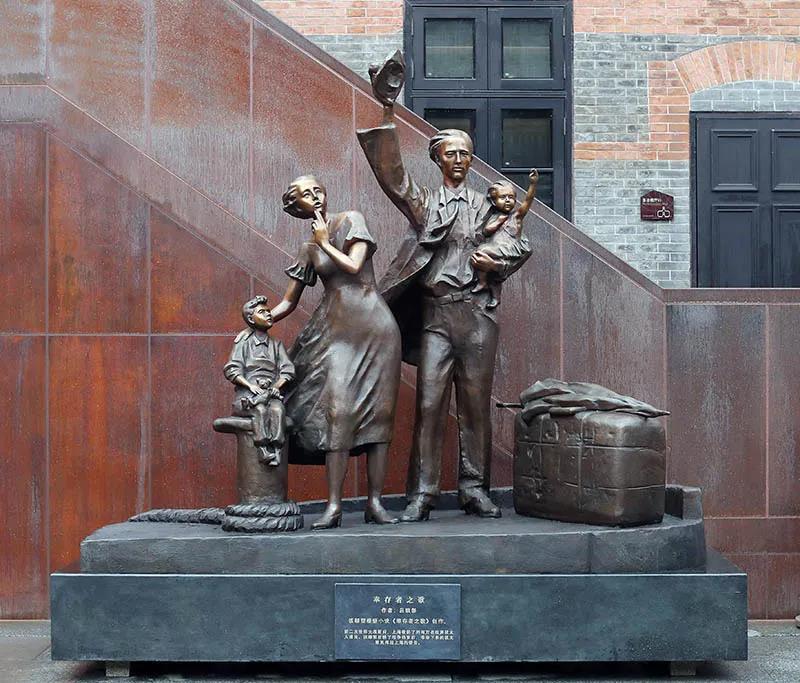 第二次世界大战期间,上海收留了约两万名欧洲犹太人难民。这组雕塑长2.8米、宽1米、高2.6米,以浪漫主义表现手法,刻画了战争结束后幸存下来的犹太难民大卫一家依依不舍惜别上海的情景,向世界展示上海开放包容的城市精神。