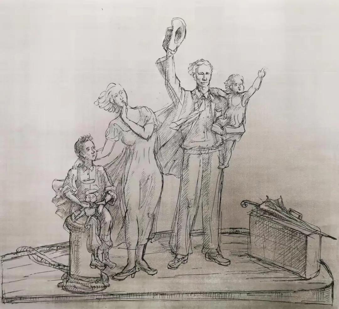 我对《幸存者之歌》原著进行了认真反复的阅读。创作的灵感和画面感在我脑海中不断浮现。我兴奋地把自己的想法告诉了贝拉老师。令人惊喜的是,我们不谋而合,决定雕塑创作的构图表现大卫一家离开上海的动人一幕,定格感人的瞬间——他们登上舰船,依依不舍,挥泪告别上海的情景。