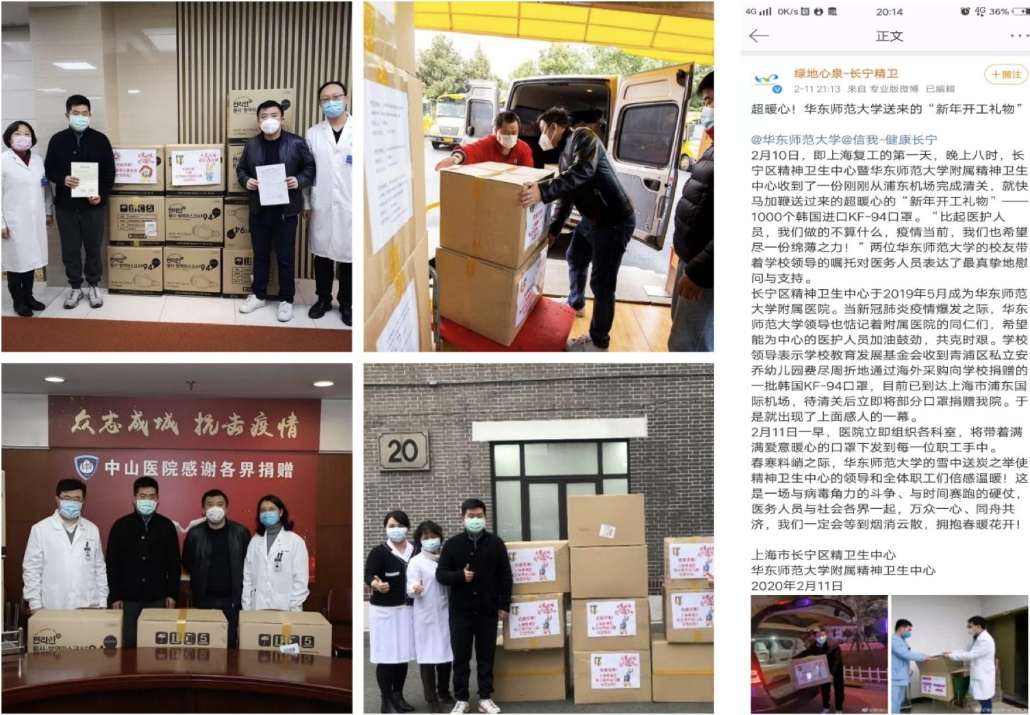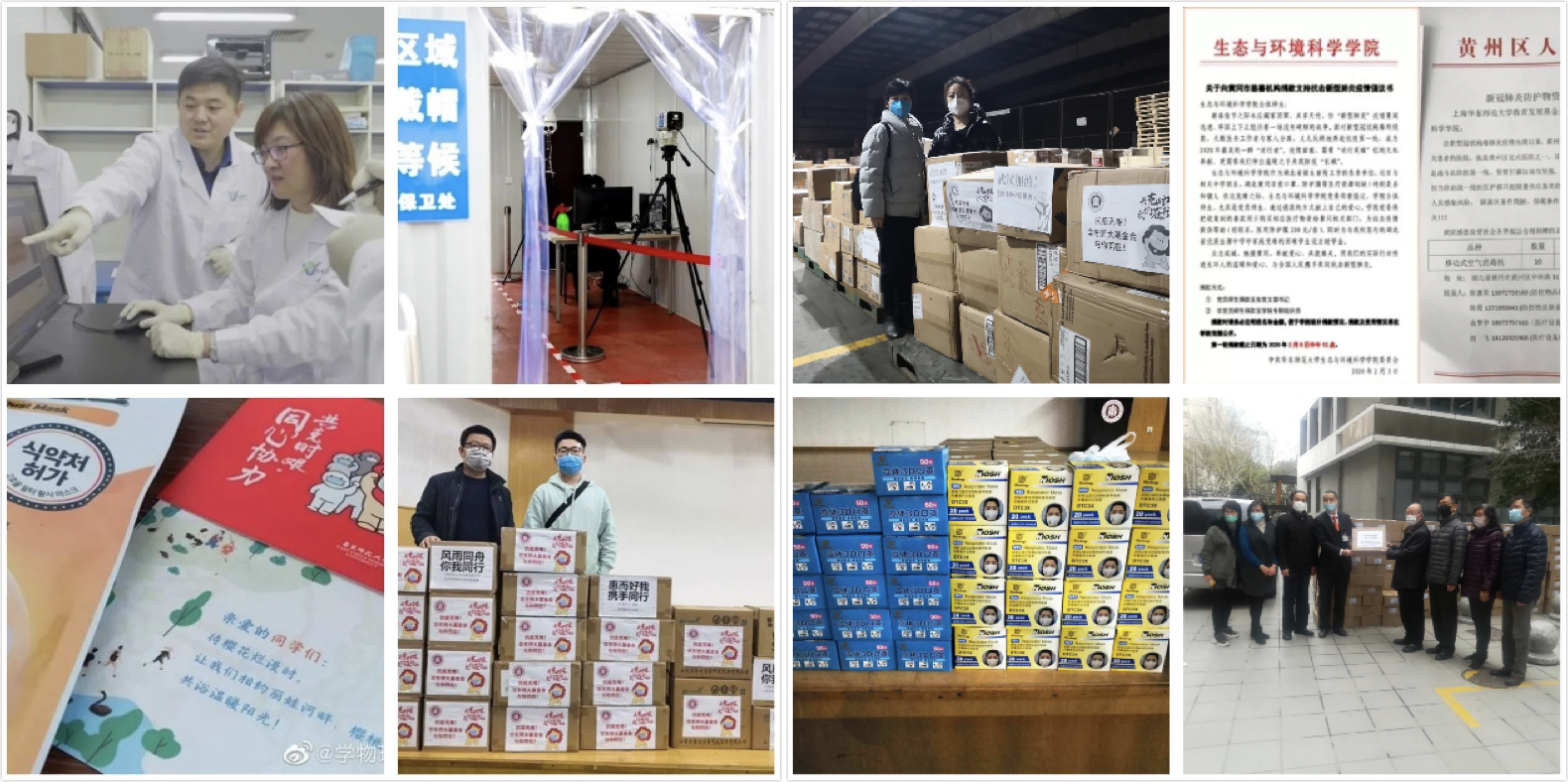 作为最早发起抗疫专项基金的高校之一,华东师大依托学校5A基金会资质,汇聚师生校友力量,协助、运送到抗疫一线物资和为校园防疫工作筹集资金总值达400多万元。学校也很早为232名身在湖北的同学邮寄口罩和明信片,给湖北的学生们送去持续的关爱和温暖。