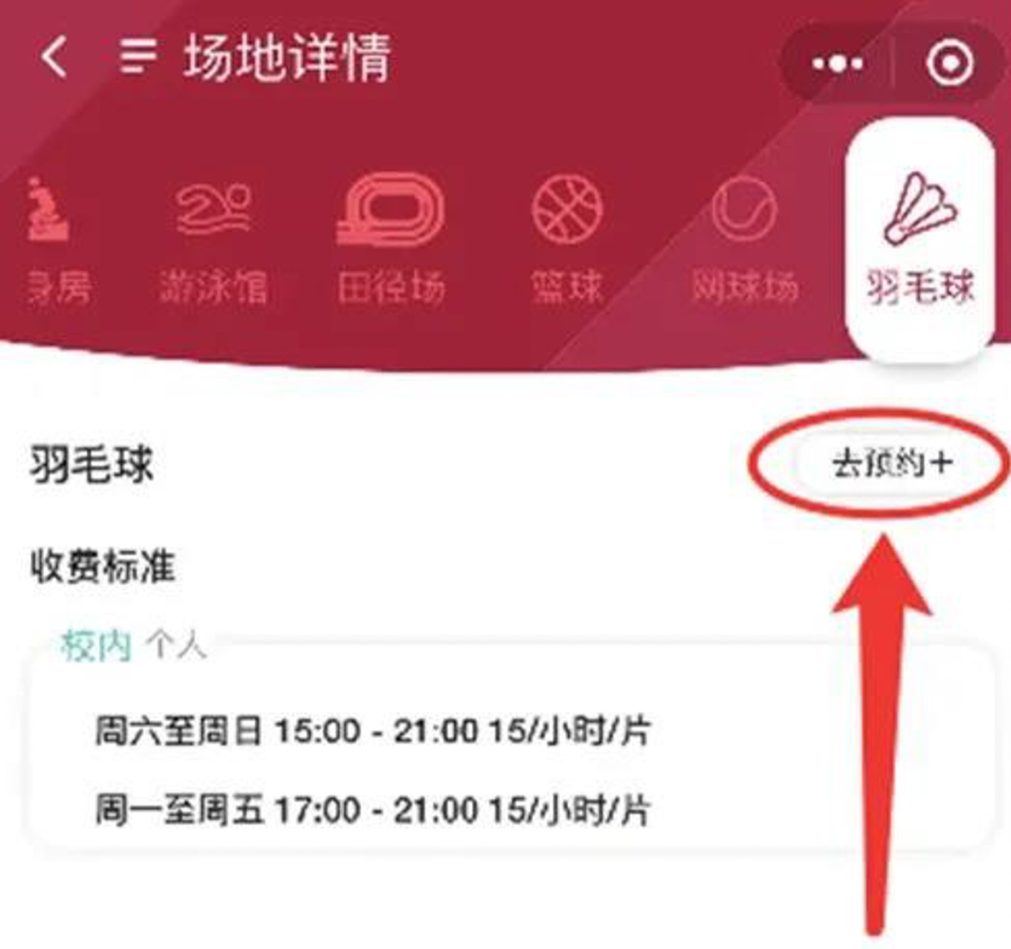 点击右上方“去预约”按钮,进入场馆预约界面。选择人员性质、日期及时间段、空余场地后,提交按钮,即可预约。线上自动审批和管理,无需等待审批,即时预订即时使用。