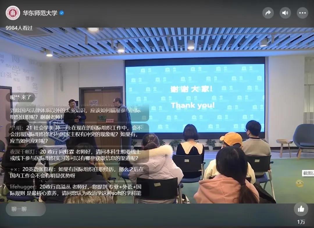 报名到华东师大国际合作与交流部门挂职锻炼的陈晖同学说:“在参加讲座和分享会后,我对国际组织实习任职很有意愿,会持续关注,希望能让自己更加优秀,有机会去尝试。”