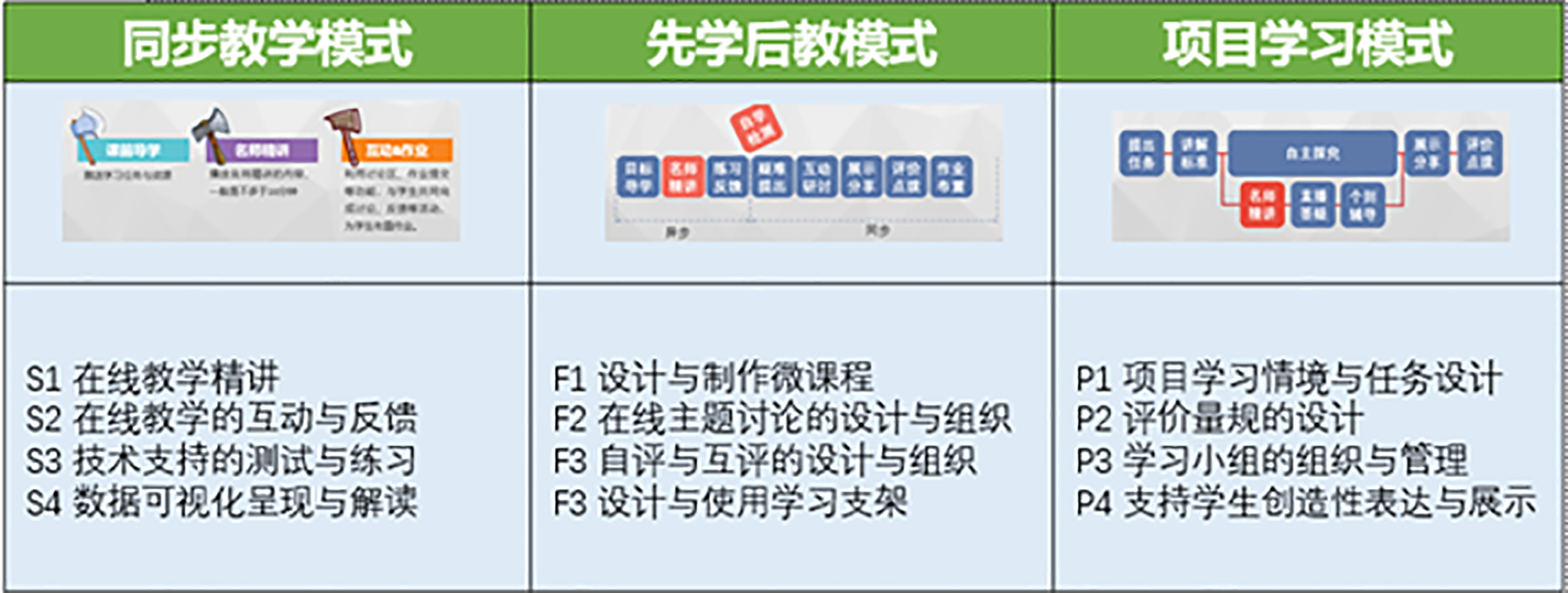 “师范生在线教学能力微认证”系统聚焦在线教学的核心环节与关键能力,将在线教学能力划分为12个模块,囊括课程设计、活动组织以及评价反馈三大教学环节,涵盖同步教学、先学后教以及项目学习三种在线教学模式,通过进阶式的目标达成,实现以学生能力提高为衡量标准的发展宗旨。