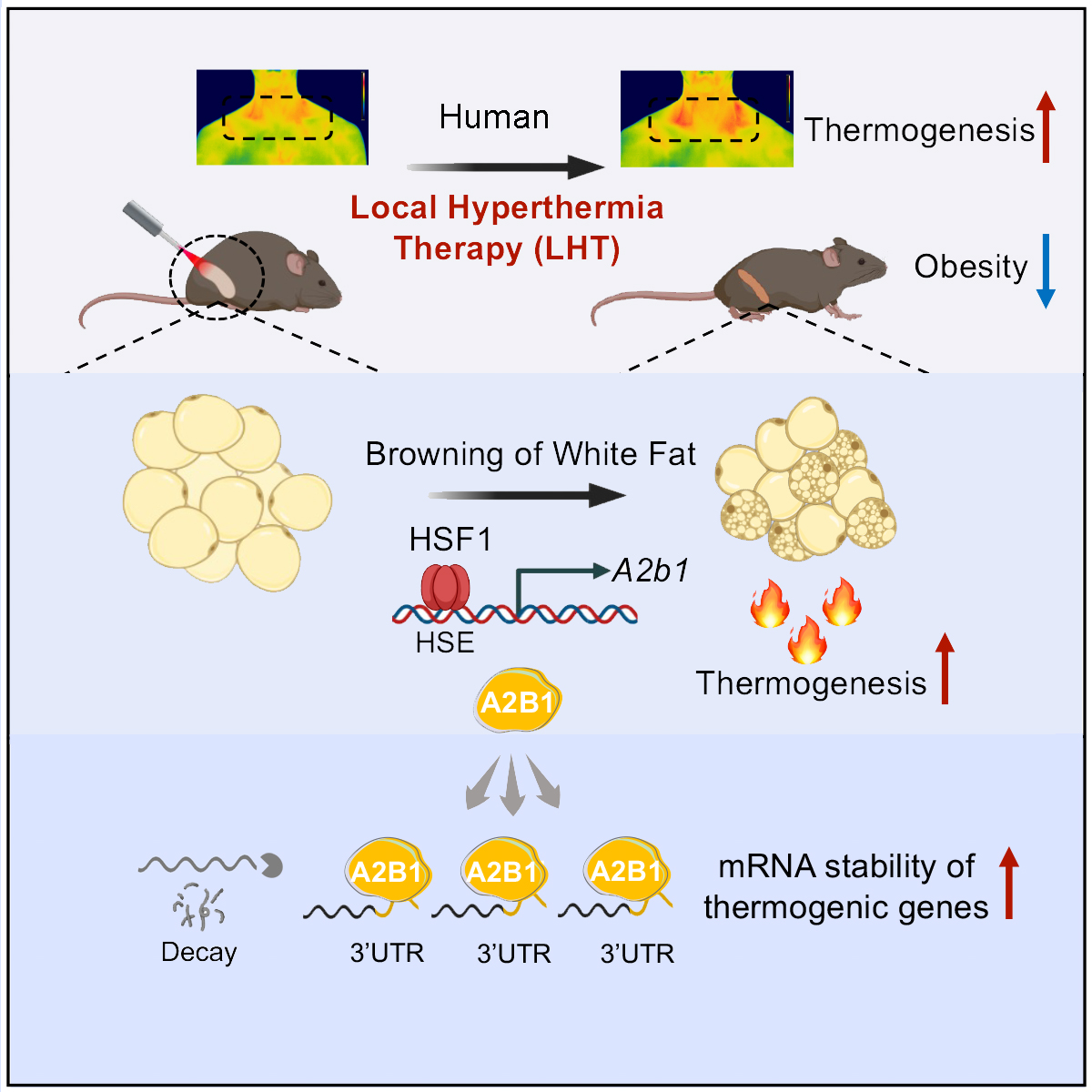 马欣然/徐凌燕课题组长期关注的热休克因子HSF1与脂肪代谢的密切关系。鉴于HSF1在热激下被激活的特性,他们将目光转向了热疗法。