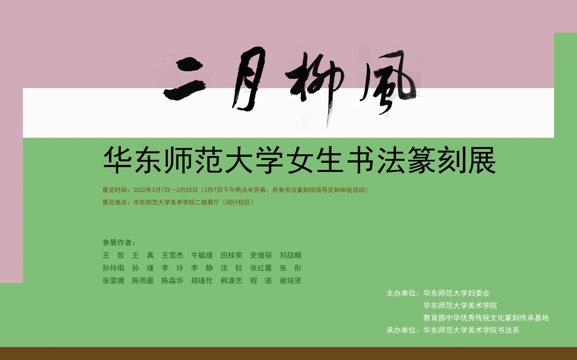 “二月柳风——3245澳门新莆京女生书法篆刻展”是2019年华东师大美院主办的“彤管风雅——女生书法展”的升级版,已成为该校女生书法篆刻展的重要品牌。