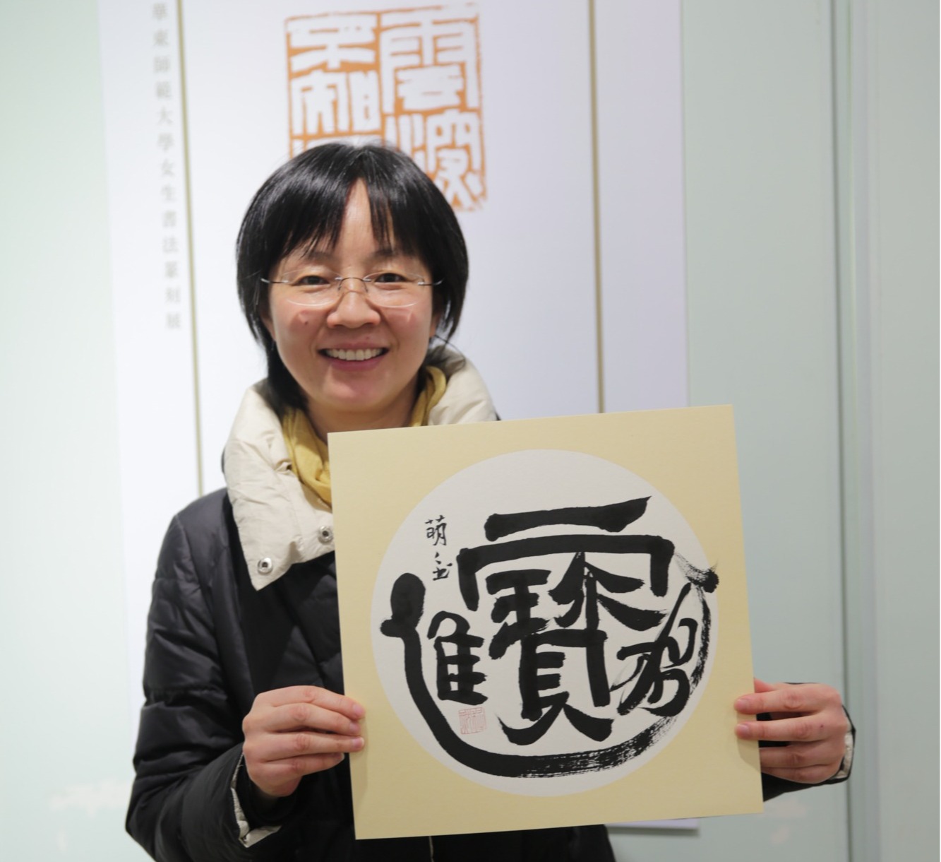 展览现场还设立了书法篆刻导览和体验区。一张张方桌上篆刻工具齐备,女性师生可亲手体验篆刻的乐趣。美术学院书法系女教授顾琴一边篆刻,一边介绍相关知识,普及篆刻艺术。物理与电子科学学院女教授李恺是第一次接触篆刻,她完成了自己的第一个作品——李字。“太开心了!今天的活动让我感到篆刻艺术十分有趣。”