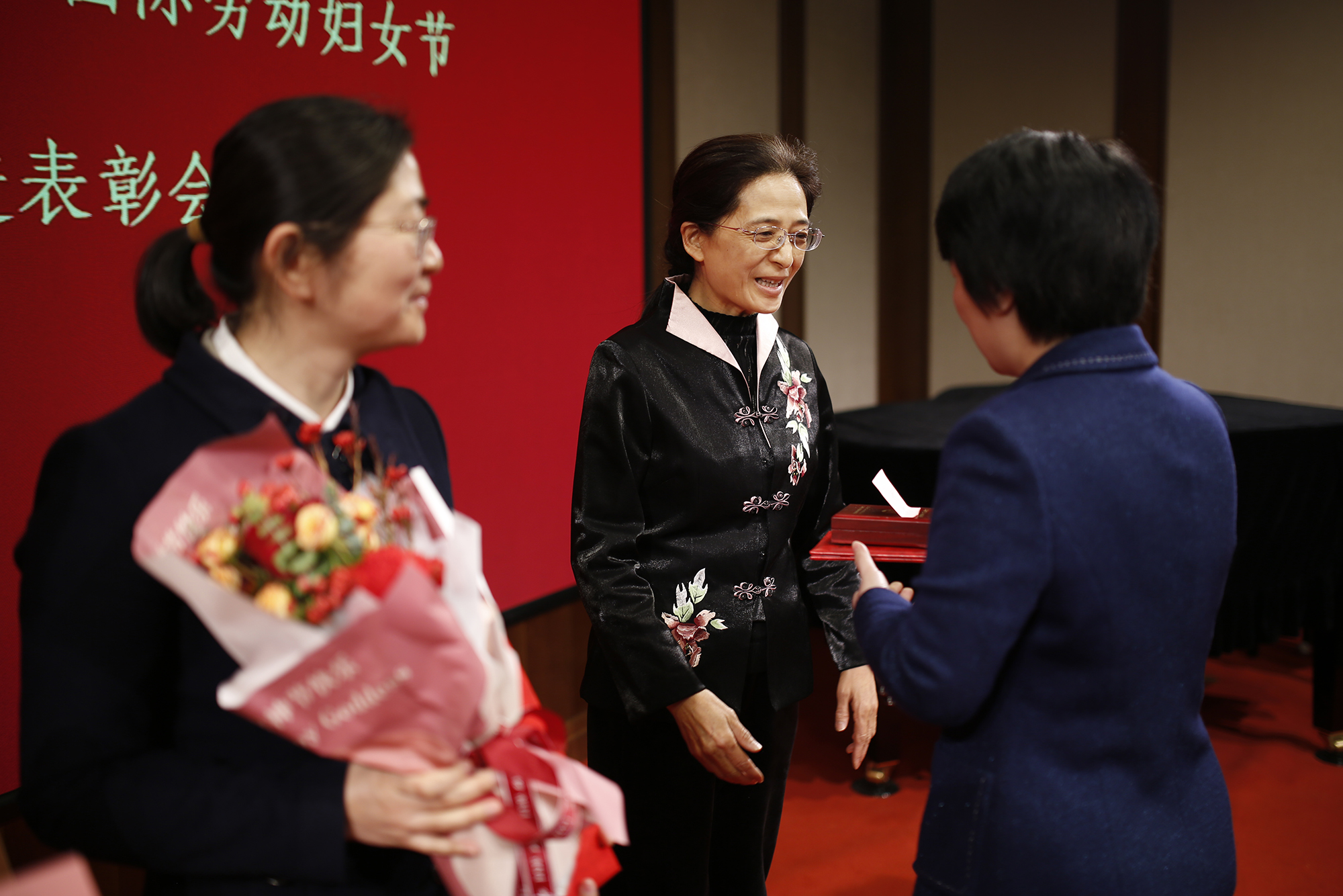校党委书记梅兵为上海市巾帼创新新秀、上海市三八红旗手陈丽清颁奖