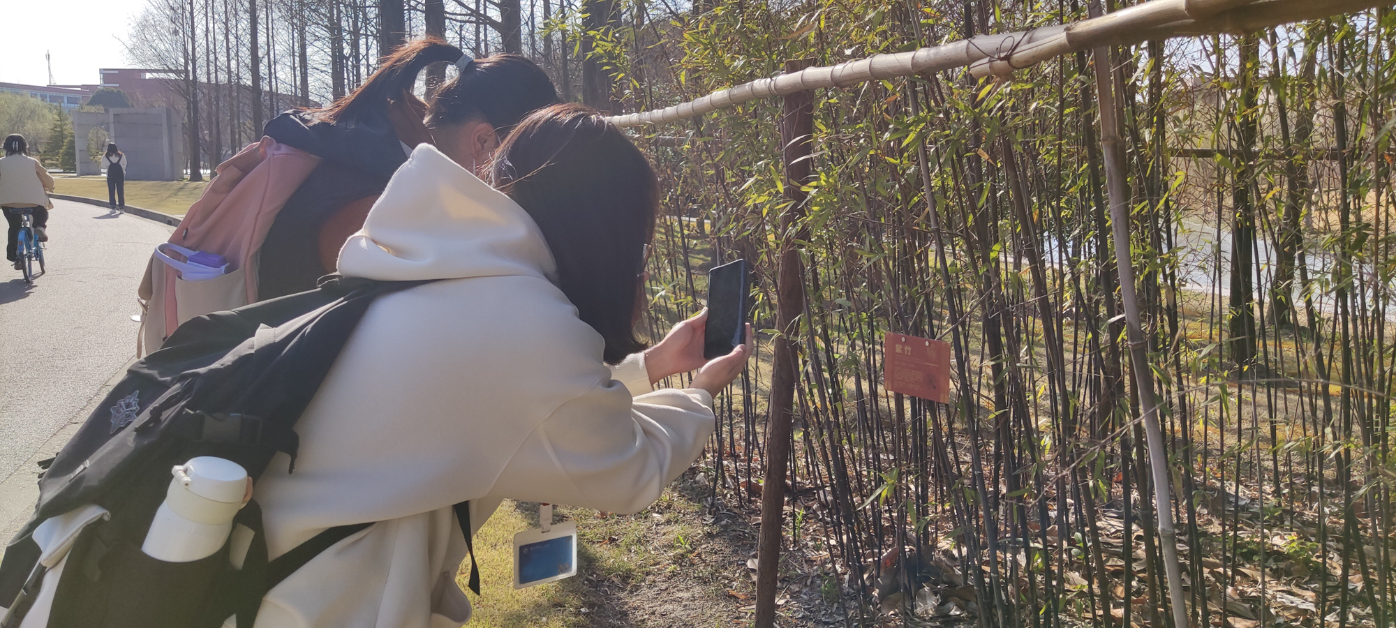 “我们学校里有很多很漂亮的植物,有时我走在校园里,就很想知道它们叫什么。最近我发现学校里挂上了这些铭牌,扫一下就可以了解植物的各类信息,认植物再也不愁啦!”华东师大2019级数学与应用数学专业的刘甜忻表示。