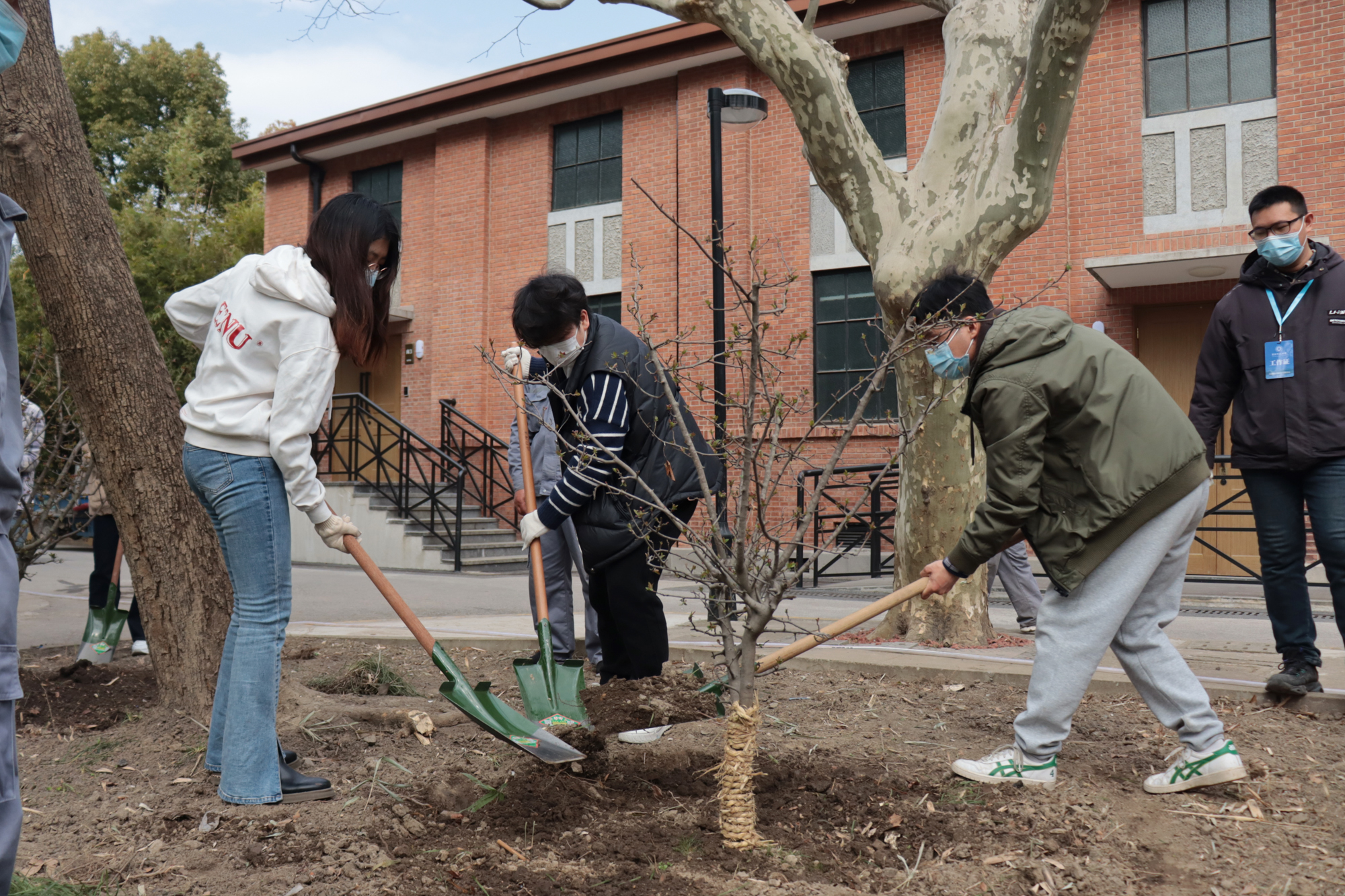 万物复苏的春天,在继续做好疫情防控的同时,同学们来到校园在平整好的空地栽花种树,共享大美春天。最近一周,华东师大师生在两校区校园种下25棵垂丝海棠、150棵柳树。新栽种的植物还有一张特别“身份证”——一块小铭牌,它不仅记录着植物的科普信息,更蕴含着“不言之教”的大文章。