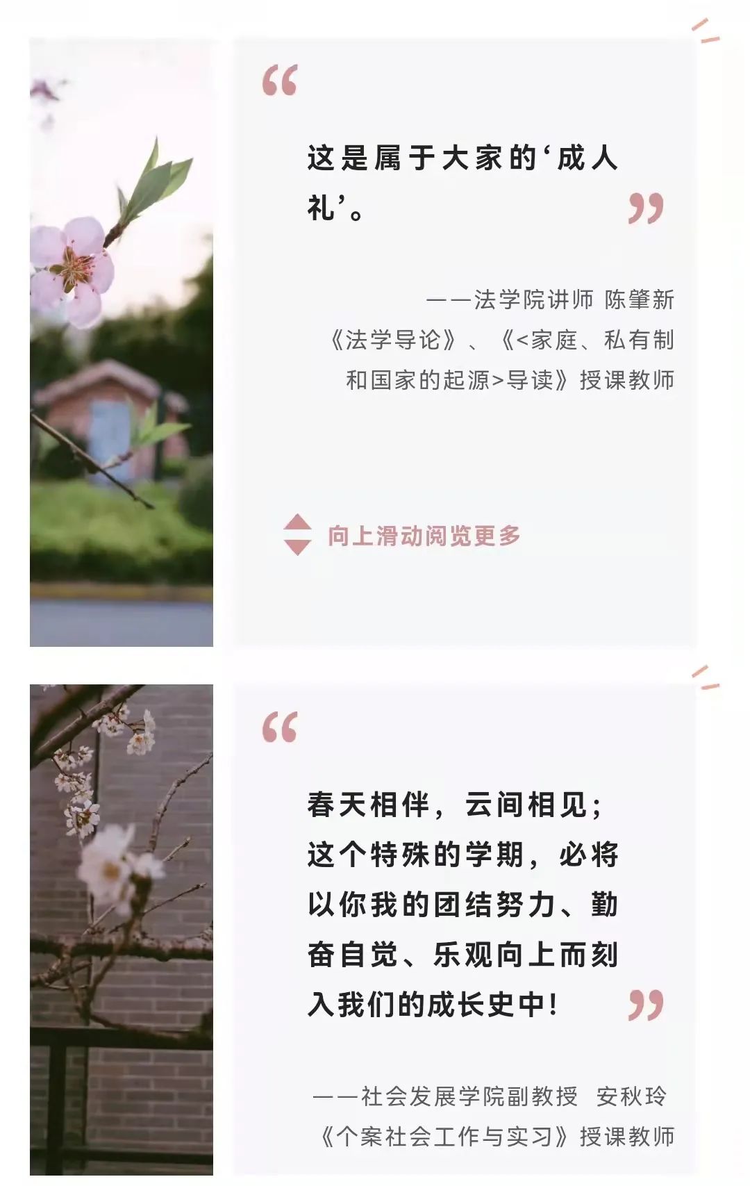 “在岁月的长河里,学会处变不惊将是我们一生的功课。”“我们正在用最先进科技力量线上授课,用共同体带来的温暖克服内心的‘恐惧’。”……这些温暖而有力量的文字,是3245澳门新莆京学生在线上学习期间收到的老师发来的“云中锦书”。