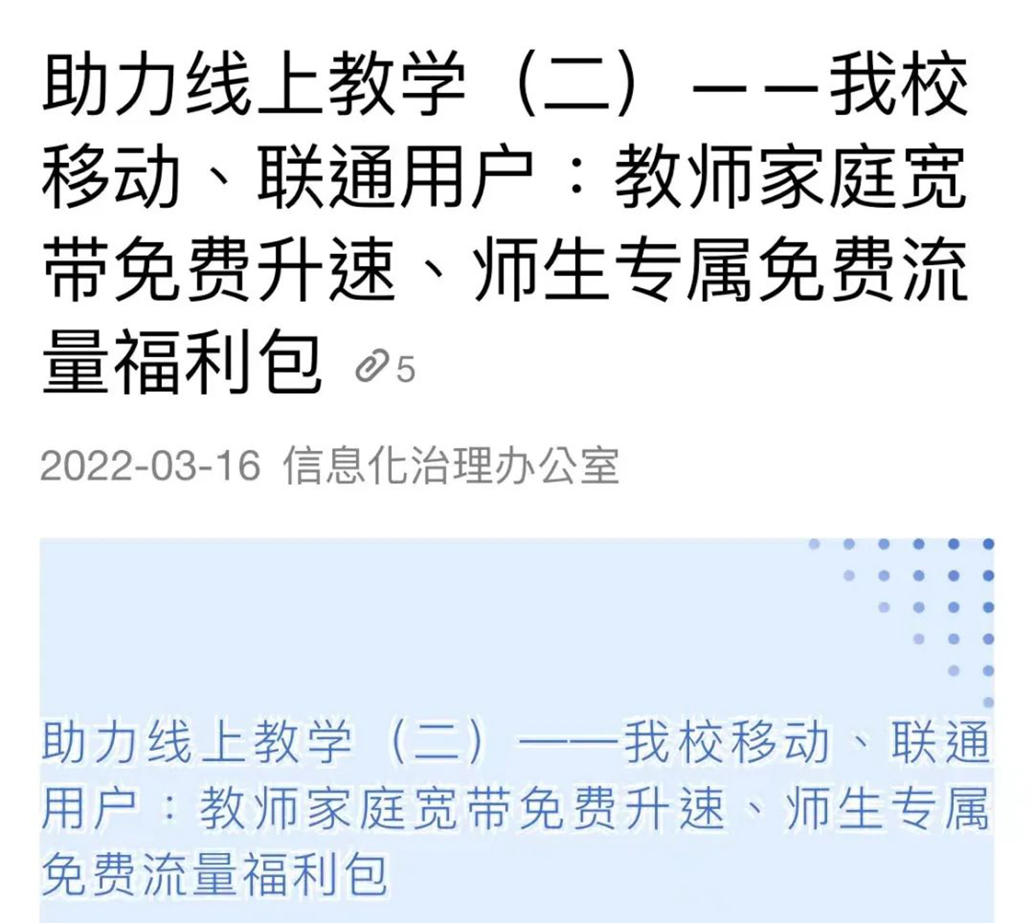 A:学校已协调上海电信、上海移动、上海联通为师生提供专属免费流量福利包(上海号段)。