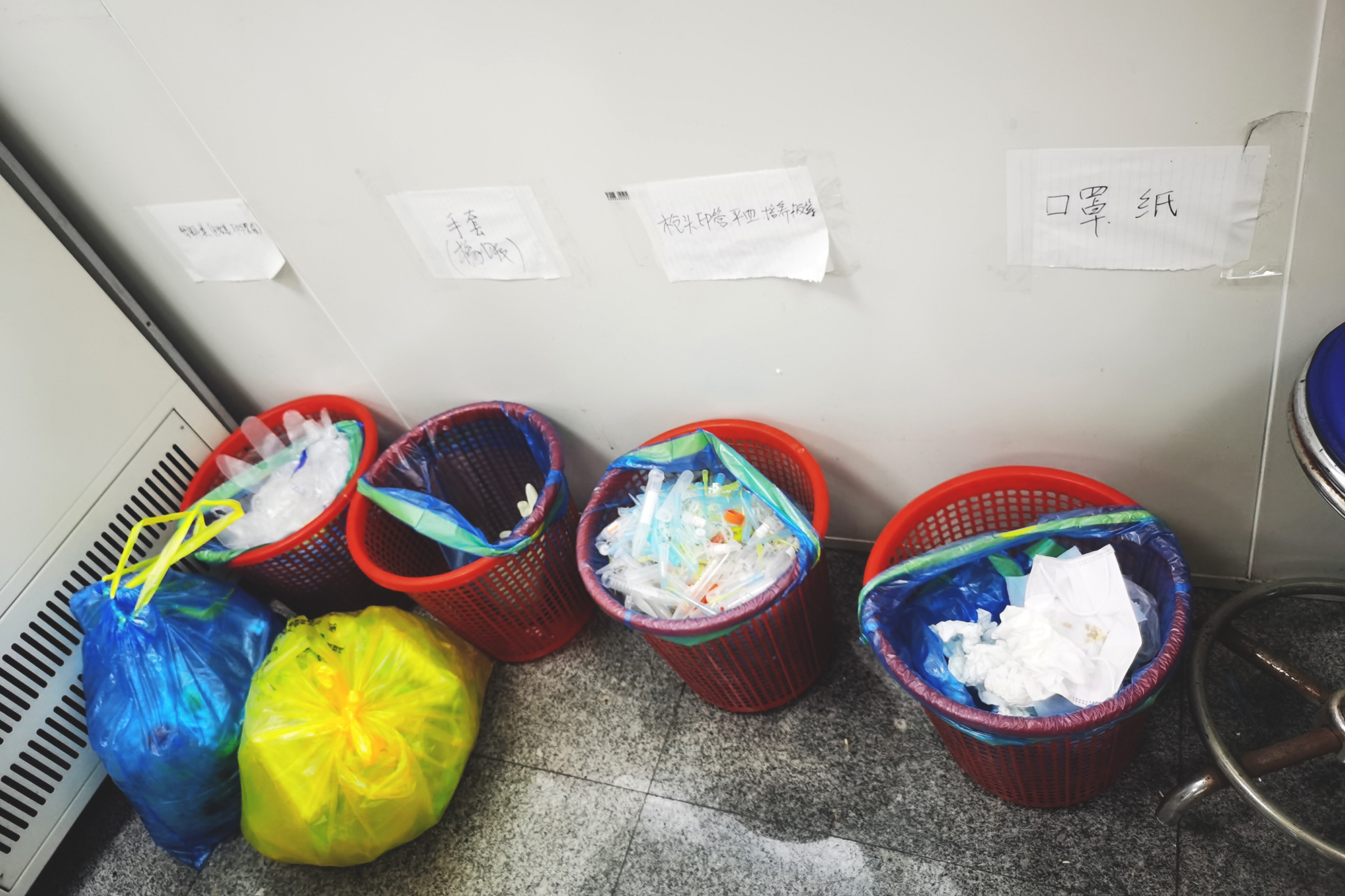 插线板串联 实验废弃物和生活垃圾混放