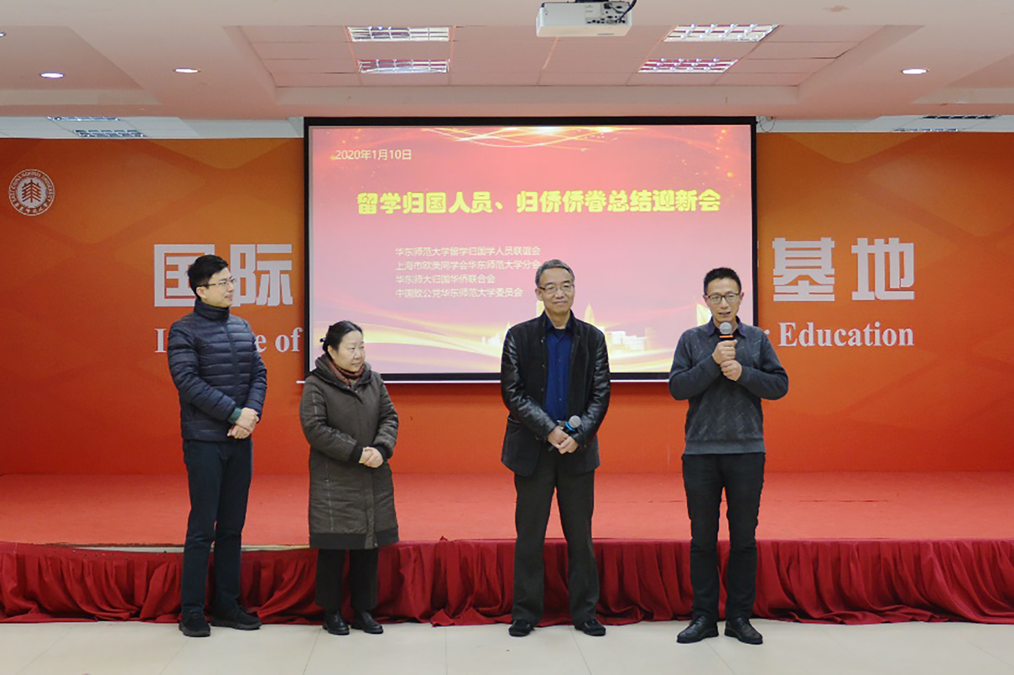 1月10日晚,华东师大留学归国人员、归侨侨眷总结迎新会在中山北路校区物理楼活动厅举行。总结迎新会由校留学归国人员联谊会、上海市欧美同学会3245澳门新莆京分会、校归国华侨联合会、致公党3245澳门新莆京委员会共同举办,100余名留学归国人员、归侨侨眷及其家属参加。校党委常务副书记王宏舟,统战部部长王庆华等出席。活动由致公党党员李晶和屠荣生主持。