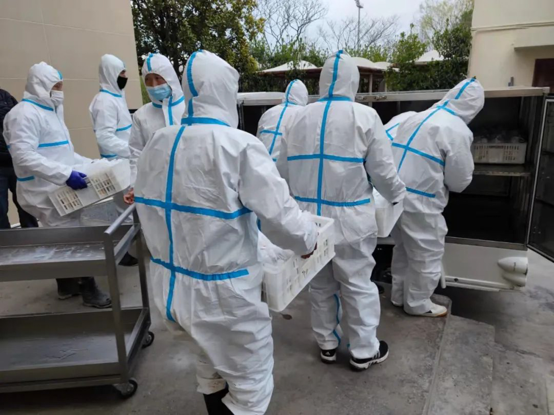 校园防疫施行网格化管理,闵行校区被划分6个网格:教学楼区教工志愿者派送,学生公寓区由后勤保障部统一调配人员车辆派送,其中普通餐由校园环境中心派送,清真餐由宿舍与教学服务中心2配送。