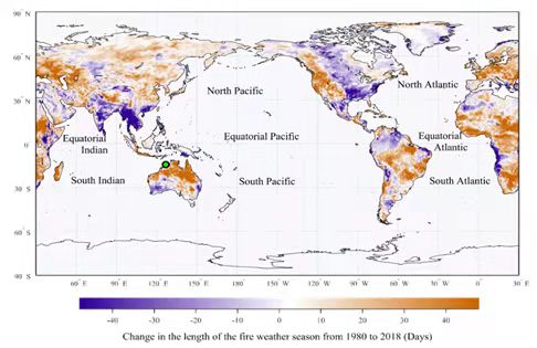 受全球气候变化影响,1980年到2018年期间野火天气指数持续延长,野火燃烧物质黑炭可以通过大气与河流输入,进入海洋埋藏在沉积物中,成为指示野火强度的指标