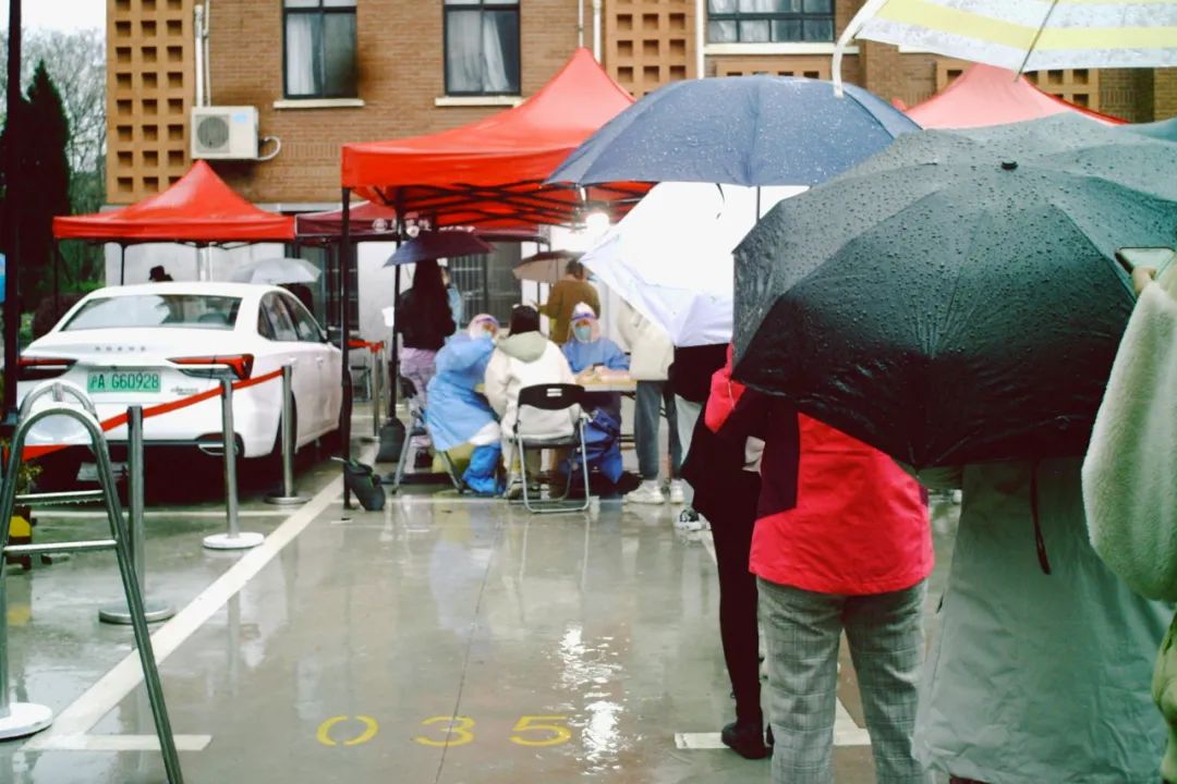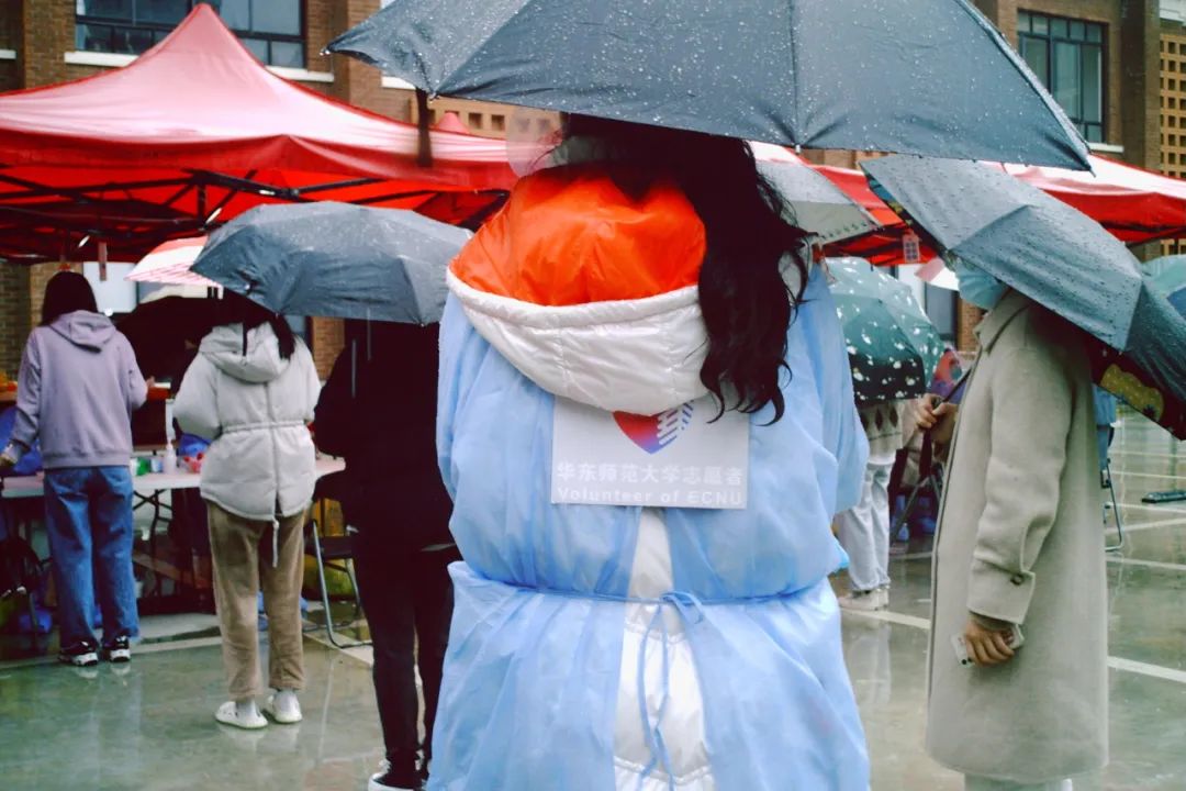 普陀校区闭环式核酸检测中,共170名志愿者分别服务于普陀校区、白玉路宿舍、同普路宿舍,冒着大雨协助引导师生进行核酸检测。晚上6:30左右又马不停蹄将一批紧急药品送达至有需要的同学宿舍楼下。