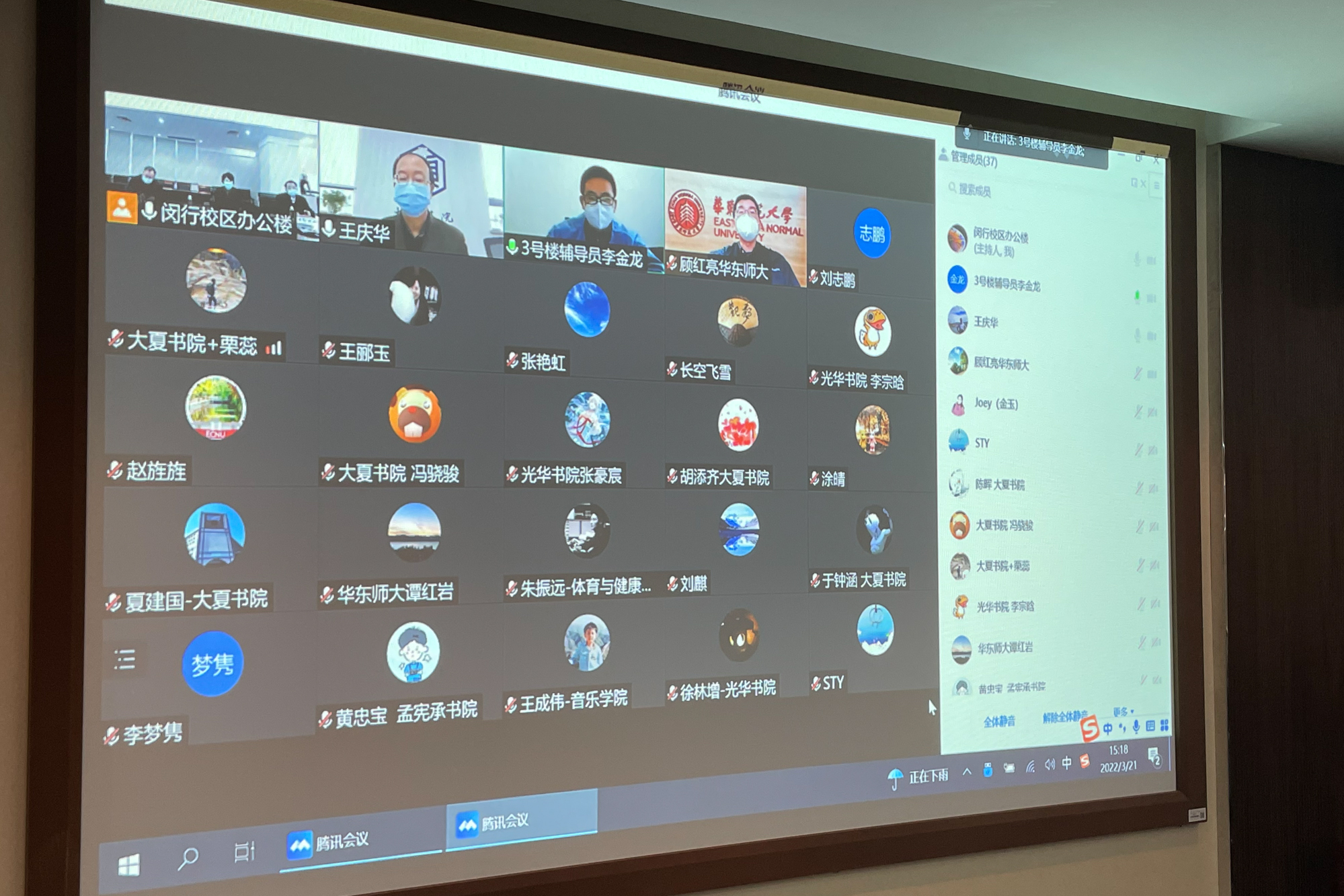 普陀校区驻楼辅导员庄瑜介绍当前学生的学习生活情况,并主持普陀校区师生问答交流。闵行校区孟宪承书院副书记万姗姗、体育与健康学院党委副书记李梦隽分享了和同事、同学们协手互助、坚守校园的心得。