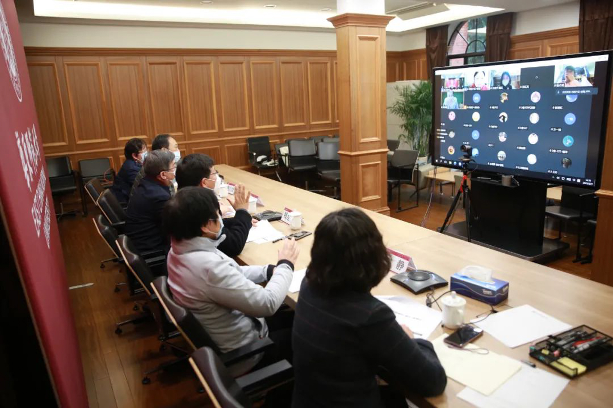 副校长戴立益和雷启立分别介绍普陀校区和闵行校区疫情防控工作情况。
