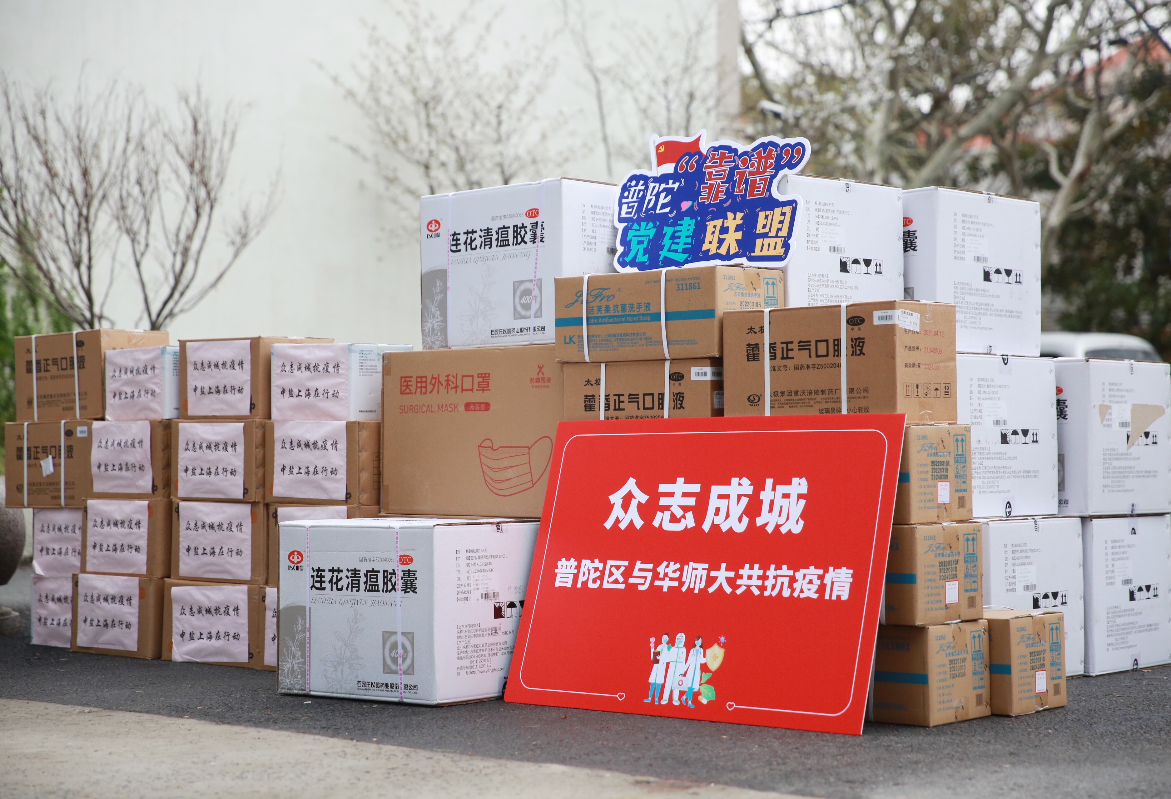 普陀区政府向学校捐赠一批防疫物资