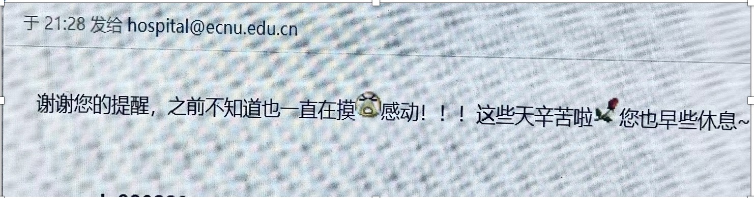 医学与健康研究院在接到学校疫情防控任务的第一时间,组建了来自华东师大附属芜湖医院、华东师大附属长宁区妇幼保健院以及华东师大附属长宁区精神卫生中心线上专家医疗团队,为学生提供医疗咨询服务。