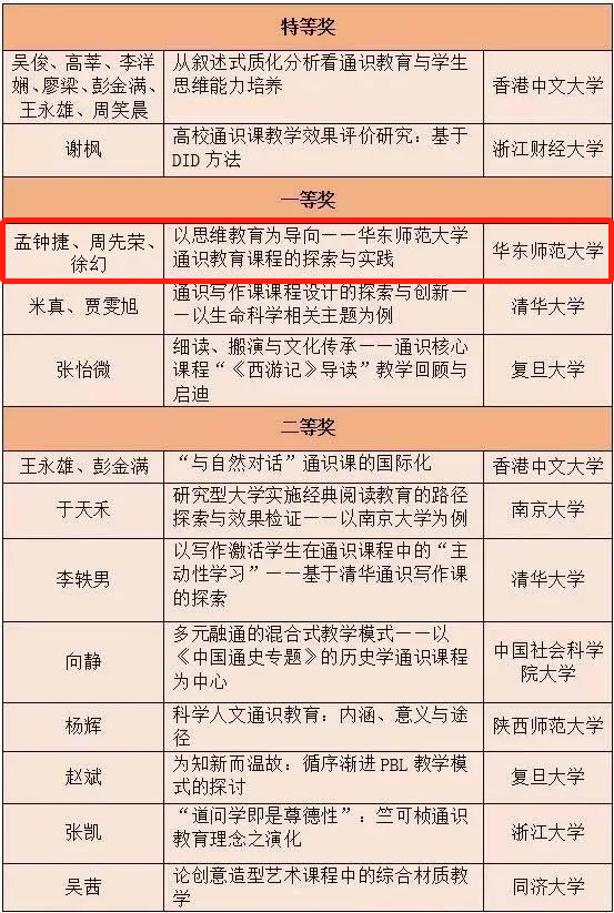 华东师大论文《以思维教育为导向——3245澳门新莆京通识教育课程的探索与实践》获评一等奖