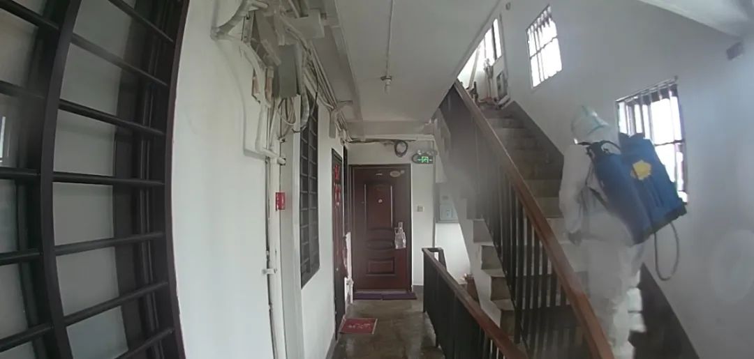 消杀前,进入每层楼道高声提示“居民朋友们,接居委会通知,将要对本楼楼道进行消杀,请大家关好门窗!”