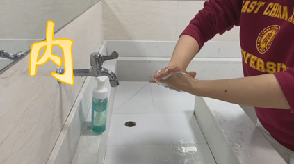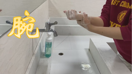 用“内、外、夹、弓、大、立、腕” 七步法对手进行清洁(洗手液、香皂均可),每一步都要认真揉搓双手15秒以上。