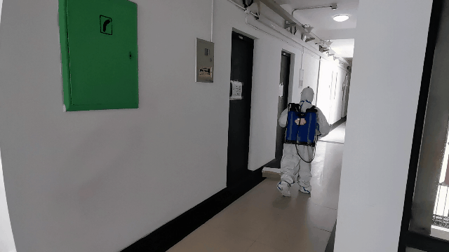 最近这段时间,我们的工作量确实很大,多了很多平时没有的工作。我和倪春梅主要协助志愿者分发盒饭和各种物资,虽然琐碎,但都是些手边活。凌金仙最辛苦,因为疫情防控,对环境保洁要求更高。她不仅要打扫卫生,处理大量生活垃圾,还得背着近40斤的消毒喷桶每天给楼内公共空间做两次消杀,每天都累得腰酸背疼。