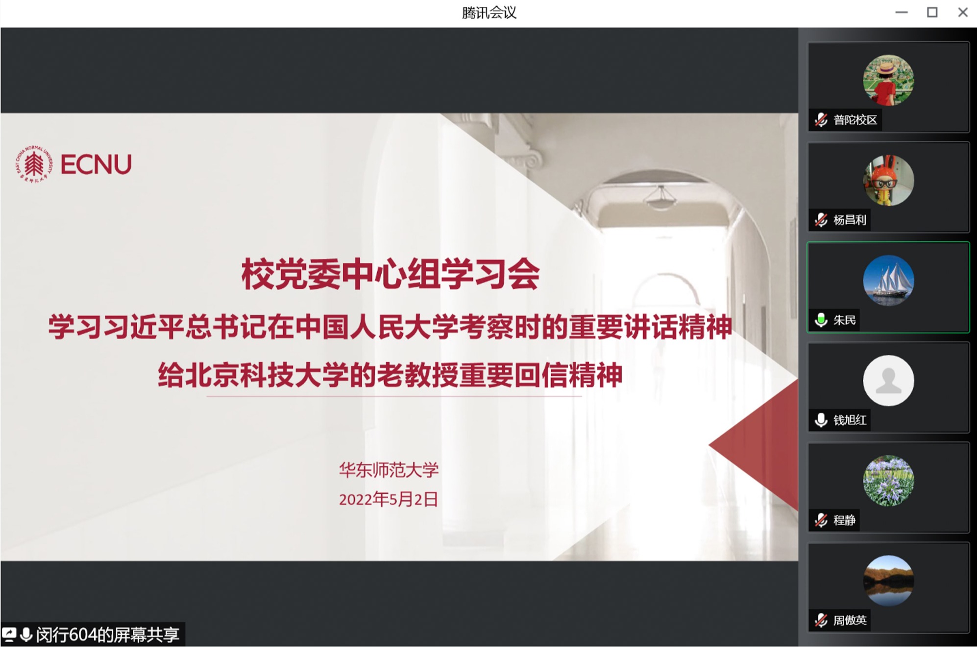 会上,中心组成员共同回顾了《新闻联播》关于习近平总书记在中国人民大学考察的专题报道。钱旭红、朱民分别领学习近平总书记在中国人民大学考察时的重要讲话精神、给北京科技大学的老教授重要回信精神。