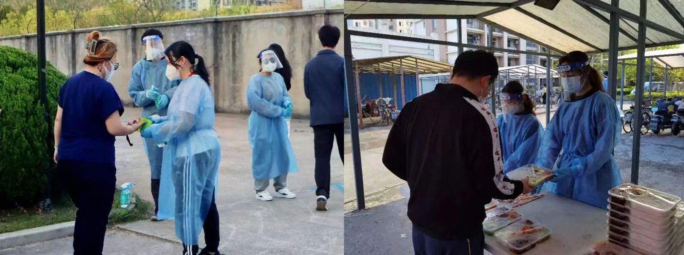 研究生公寓片区春华阁出现异常,所有员工被转运隔离的时候,同学们每日三餐中的大部分是30多公里开外的普陀校区食堂援驰而来,普陀校区秋林阁更是在自身供餐压力巨大的前提下,抽调了22名精兵强将来到春华阁解决燃眉之急。